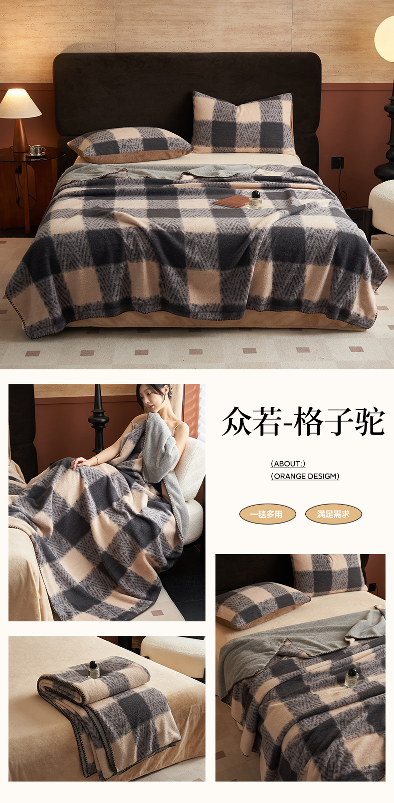 当前位置: 91家纺网 > 商品网购 > 毛毯休闲毯绒毯 > 毛毯 > 早晨家纺 2025新款众若款仿羊绒牛奶绒毛毯 众若-格子驼