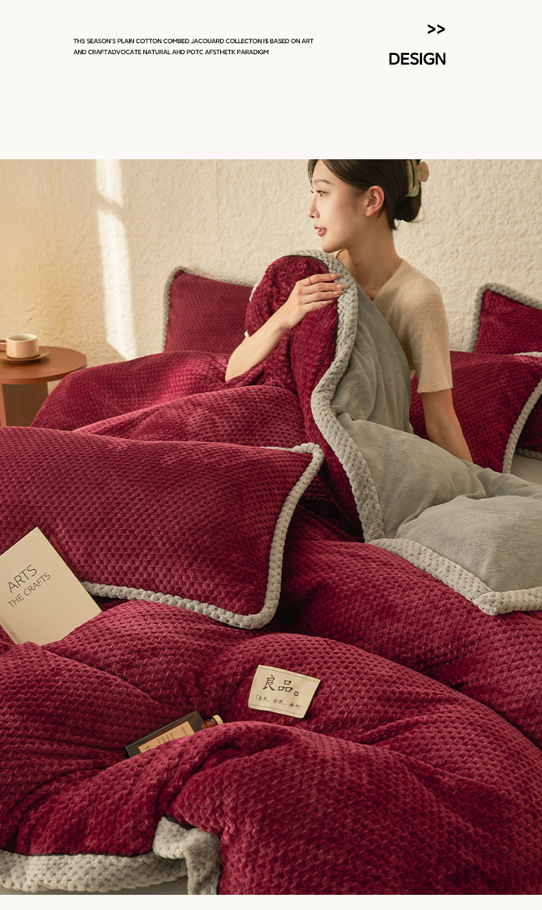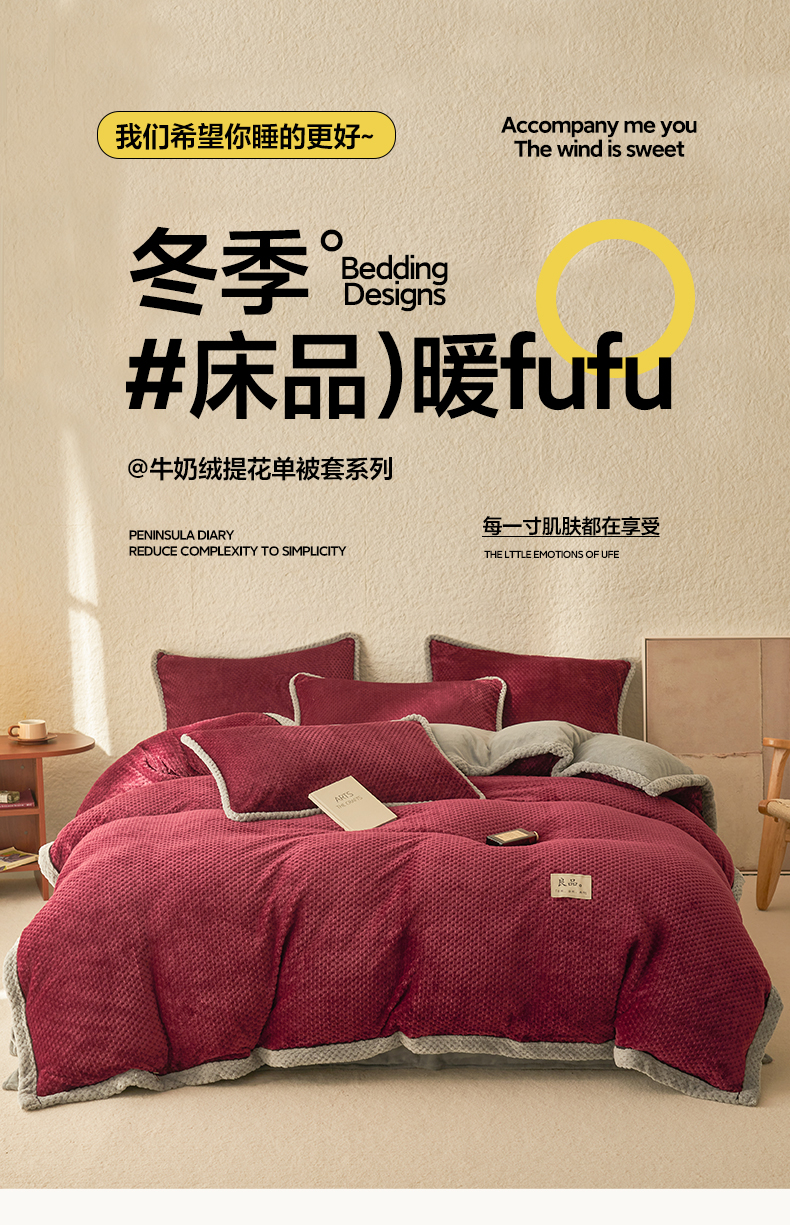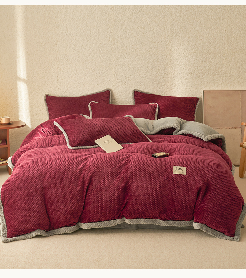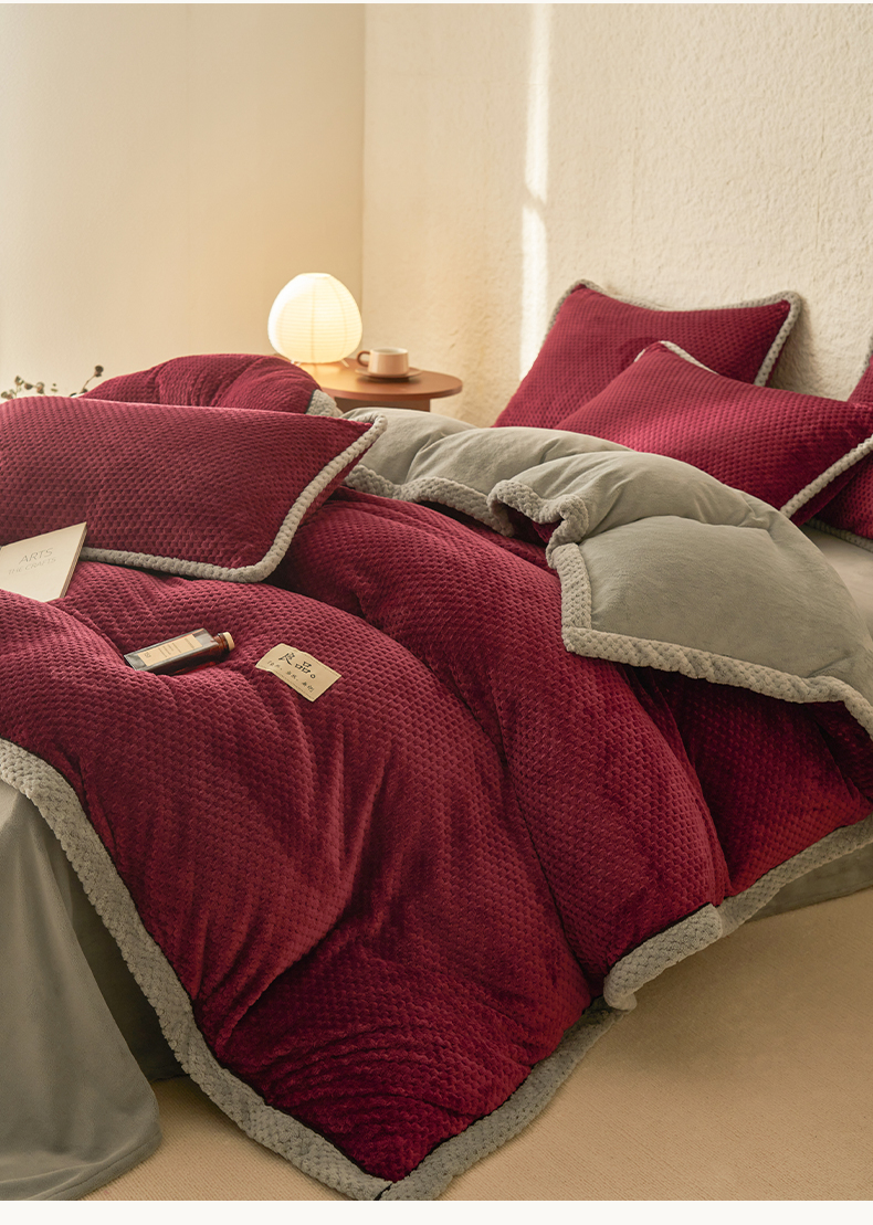 • 91家纺网 家纺一手货源 找家纺 早晨家纺 2025新款尚流款牛奶绒提花-单被套 尚流-酒红