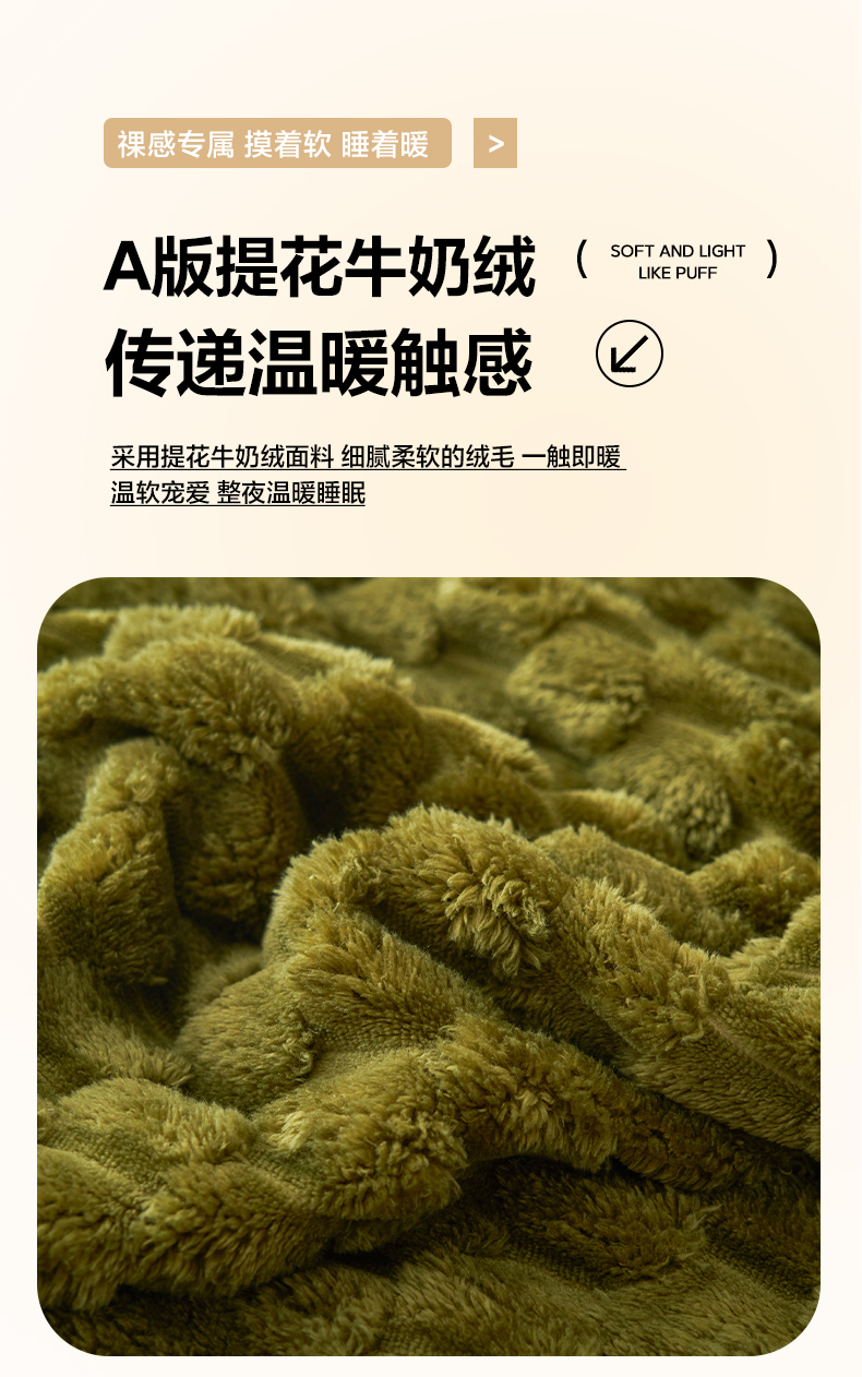 当前位置: 91家纺网 > 商品网购 > 毛毯休闲毯绒毯 > 毛毯 > 早晨家纺 2025新款金贵款-提花双层毛毯【拉链款】 金贵-橄榄绿