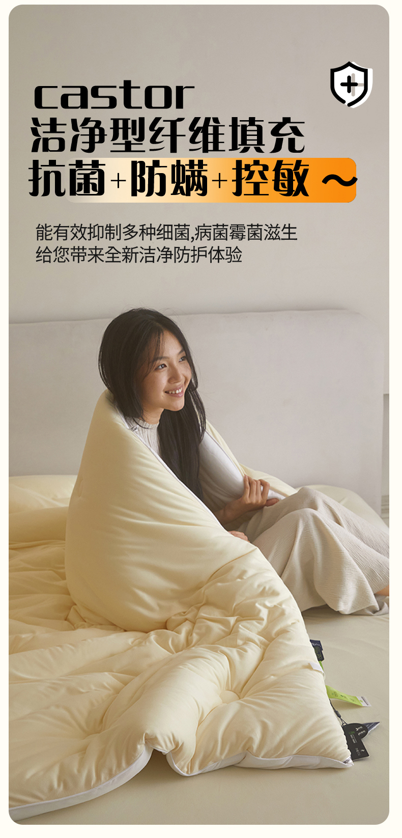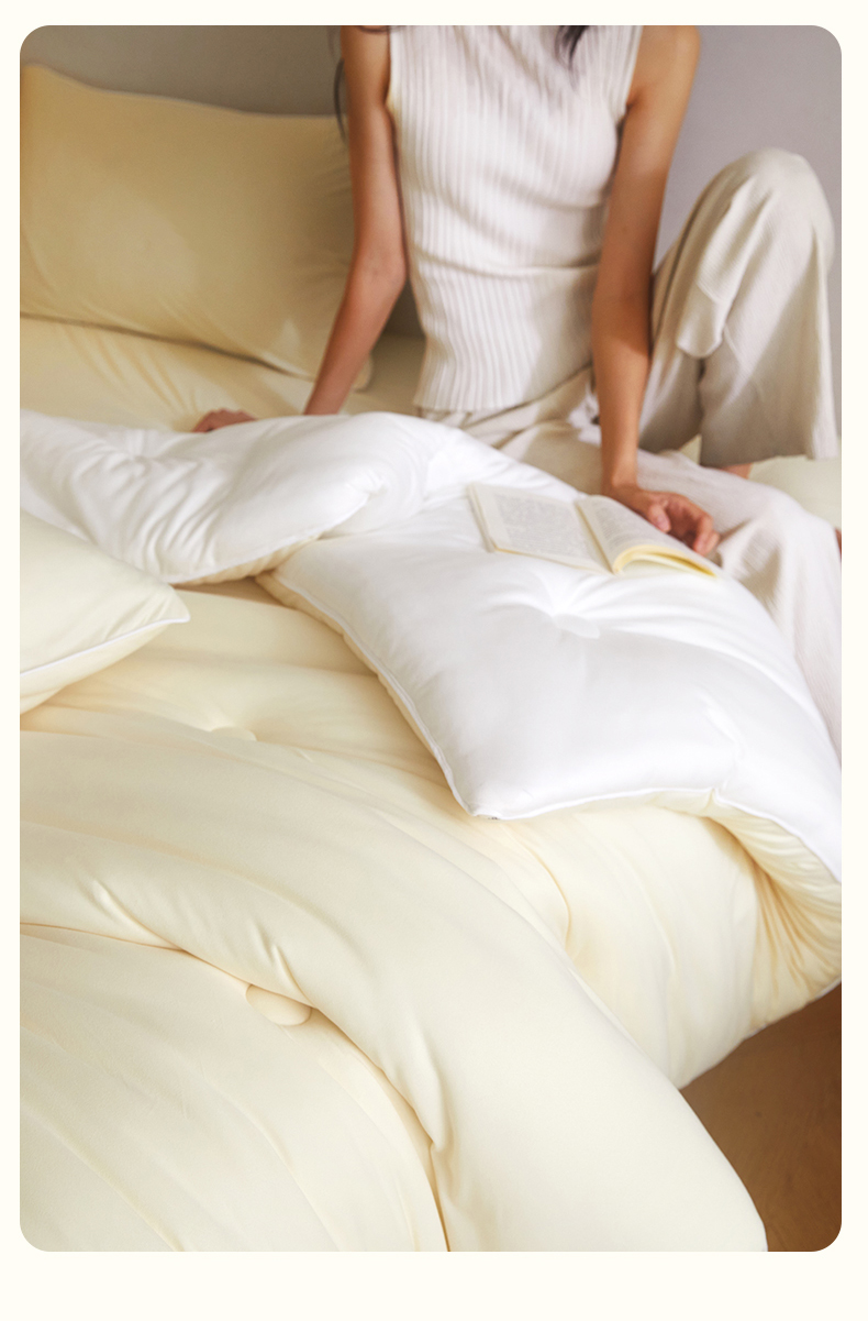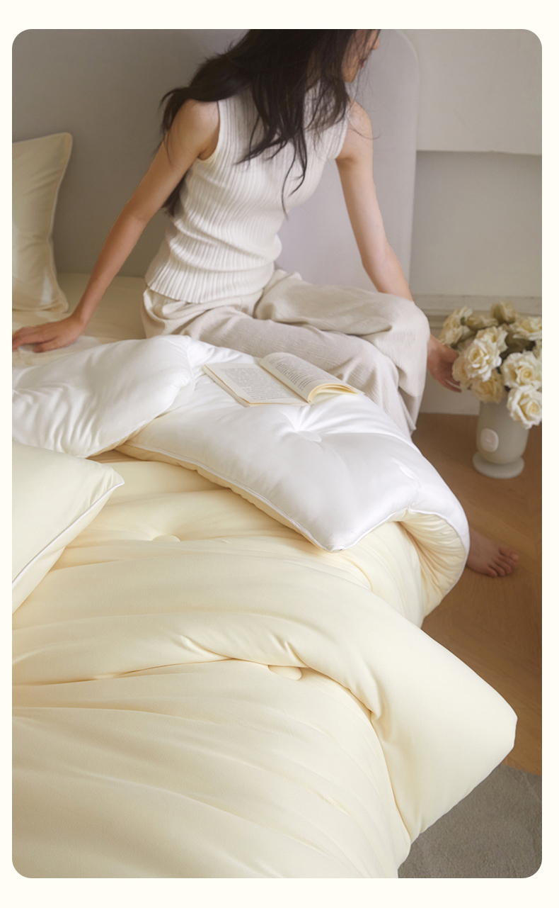 • 91家纺网 家纺一手货源 找家纺 头等舱 2025新款针织A类软糯净植力抗菌防螨防霉低致敏双拼秋冬被(模特图) 米黄+本白 91家纺网 家纺一手货源 找家纺 头等舱 2025新款针织A类软糯净植力抗菌防螨防霉低致敏双拼秋冬被(模特图) 米黄+本白