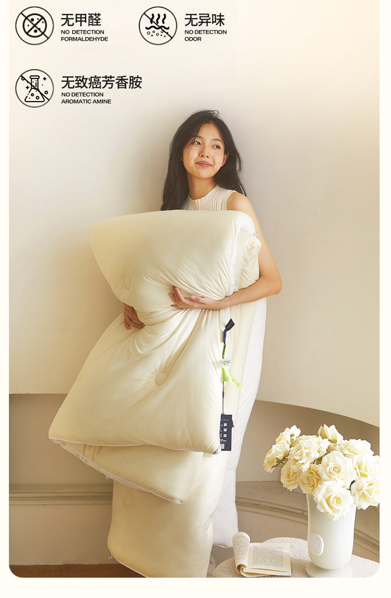 当前位置: 91家纺网 > 商品网购 > 被子 > 冬被 > 头等舱 2025新款针织A类软糯净植力抗菌防螨防霉低致敏双拼秋冬被(模特图) 米黄+本白