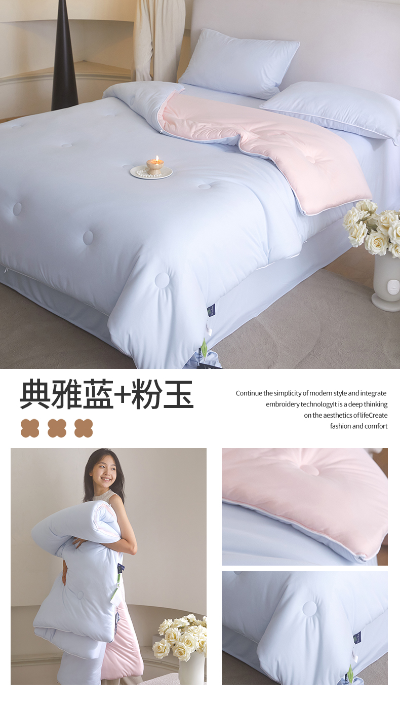 • 91家纺网 家纺一手货源 找家纺 (总)头等舱 2025新款天棉缎大提花55莱赛尔大豆7A抗菌秋冬被(模特图),卡布丽娜,慕斯,配包装