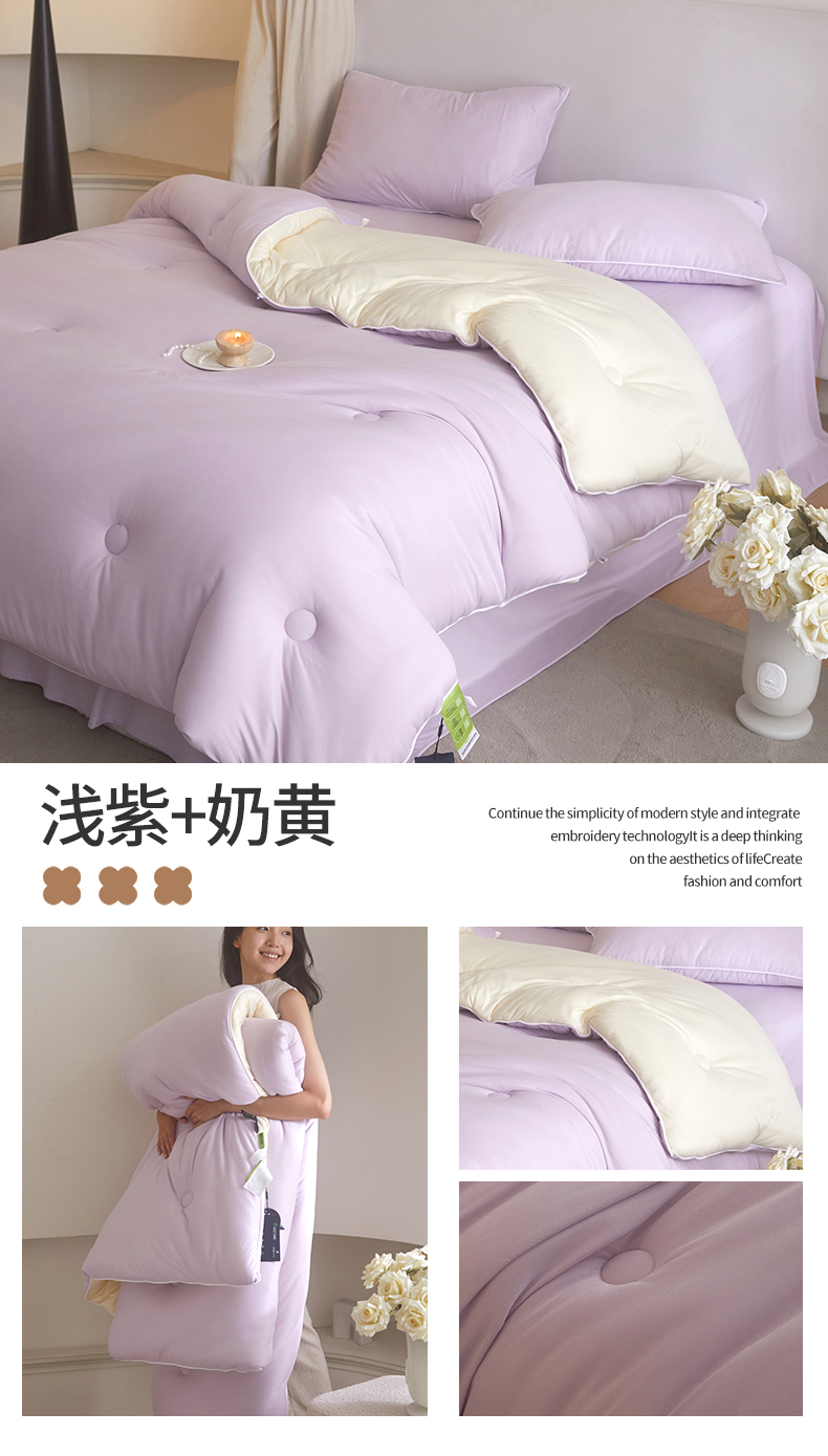 • 91家纺网 家纺一手货源 找家纺 头等舱 2025新款针织A类软糯净植力抗菌防螨防霉低致敏双拼秋冬被(模特图) 米黄+本白