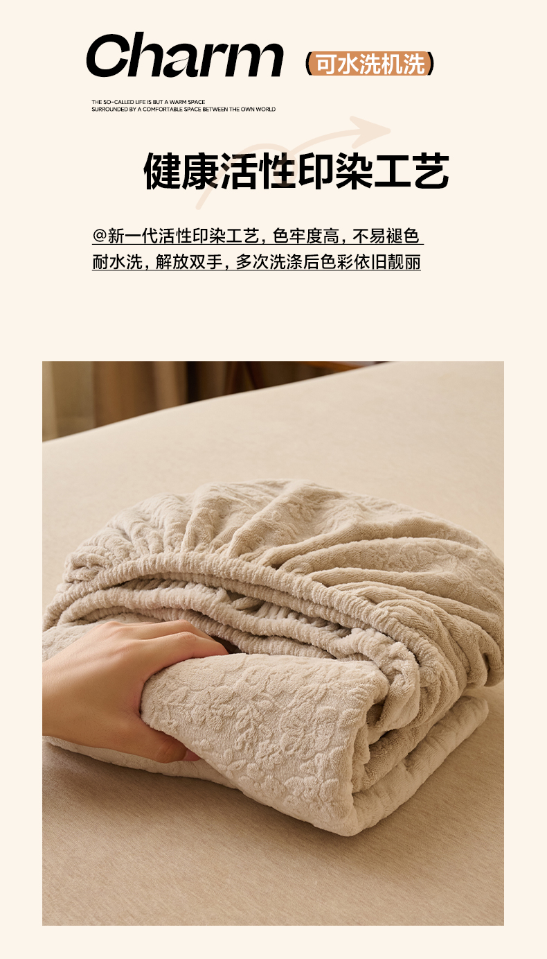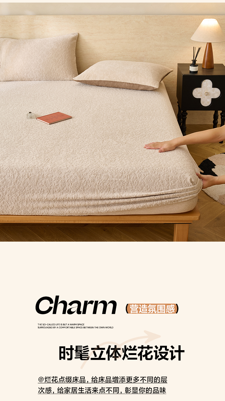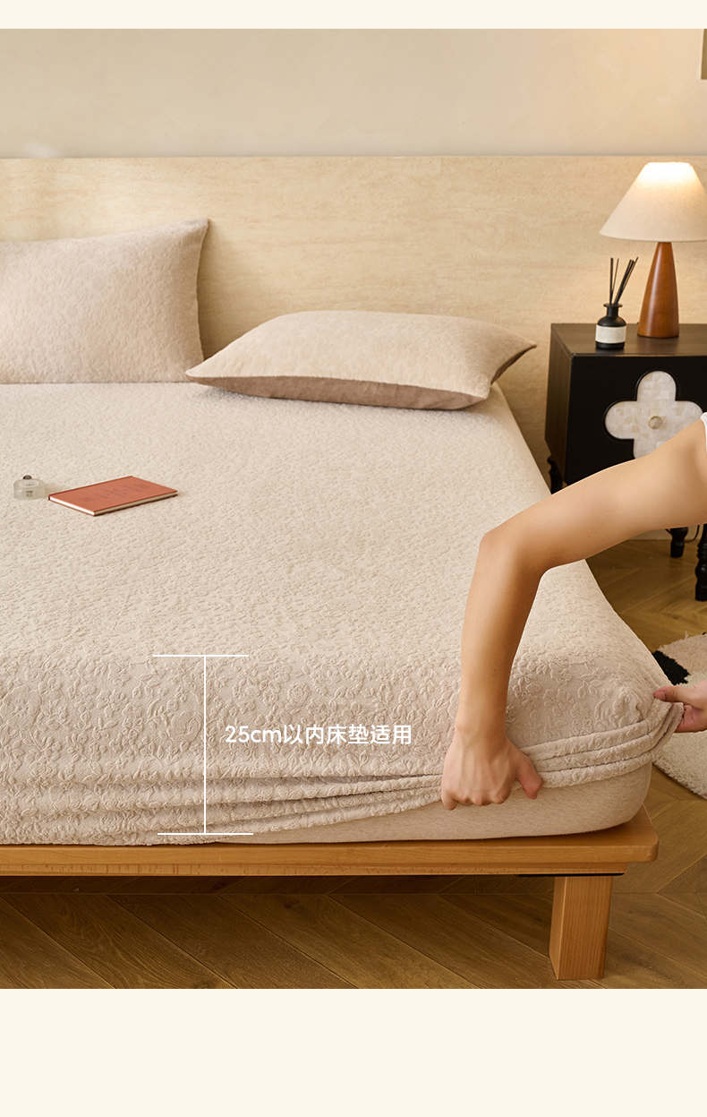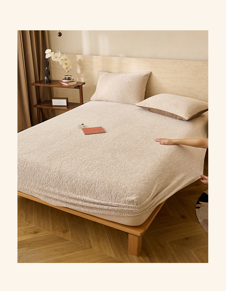 早晨家纺 2025新款蝴蝶兰款高克重牛奶绒烂花床笠 蝴蝶兰-米驼