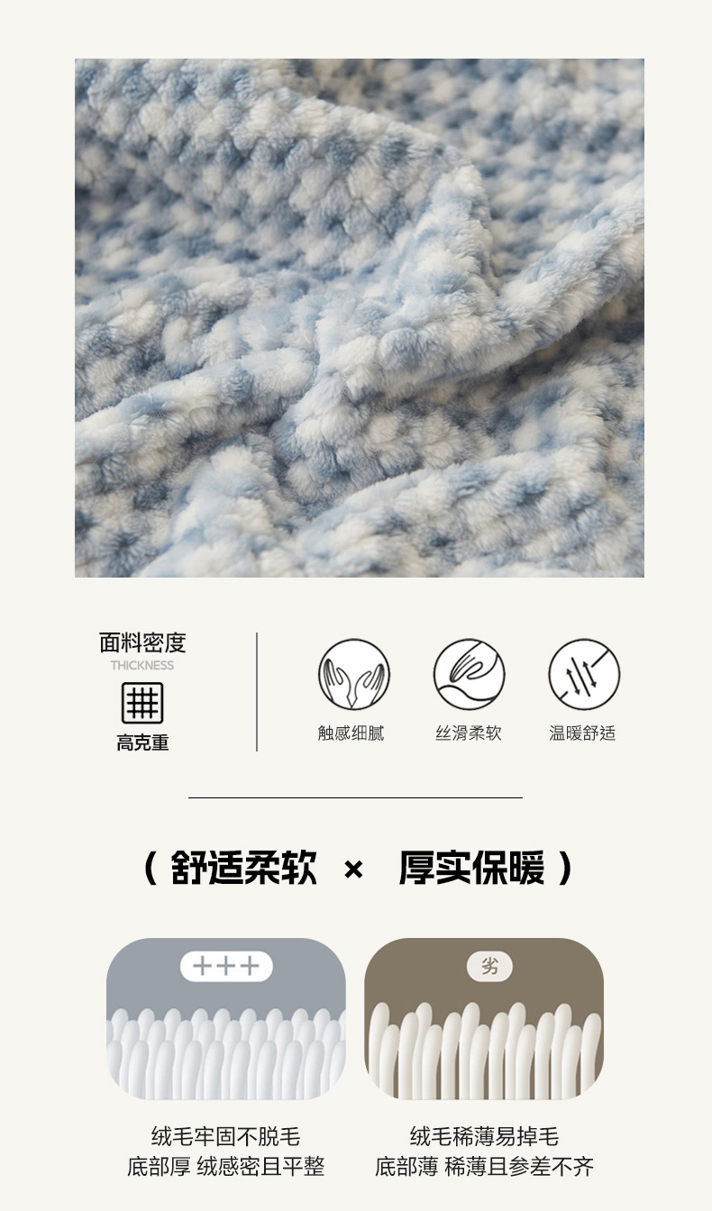 • 91家纺网 家纺一手货源 找家纺 早晨家纺 2025新款豆豆款高克重牛奶绒菠萝格无印风床笠 豆豆绒-小格蓝