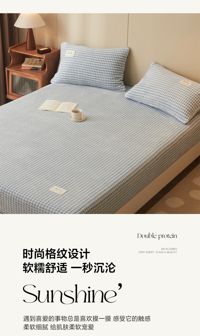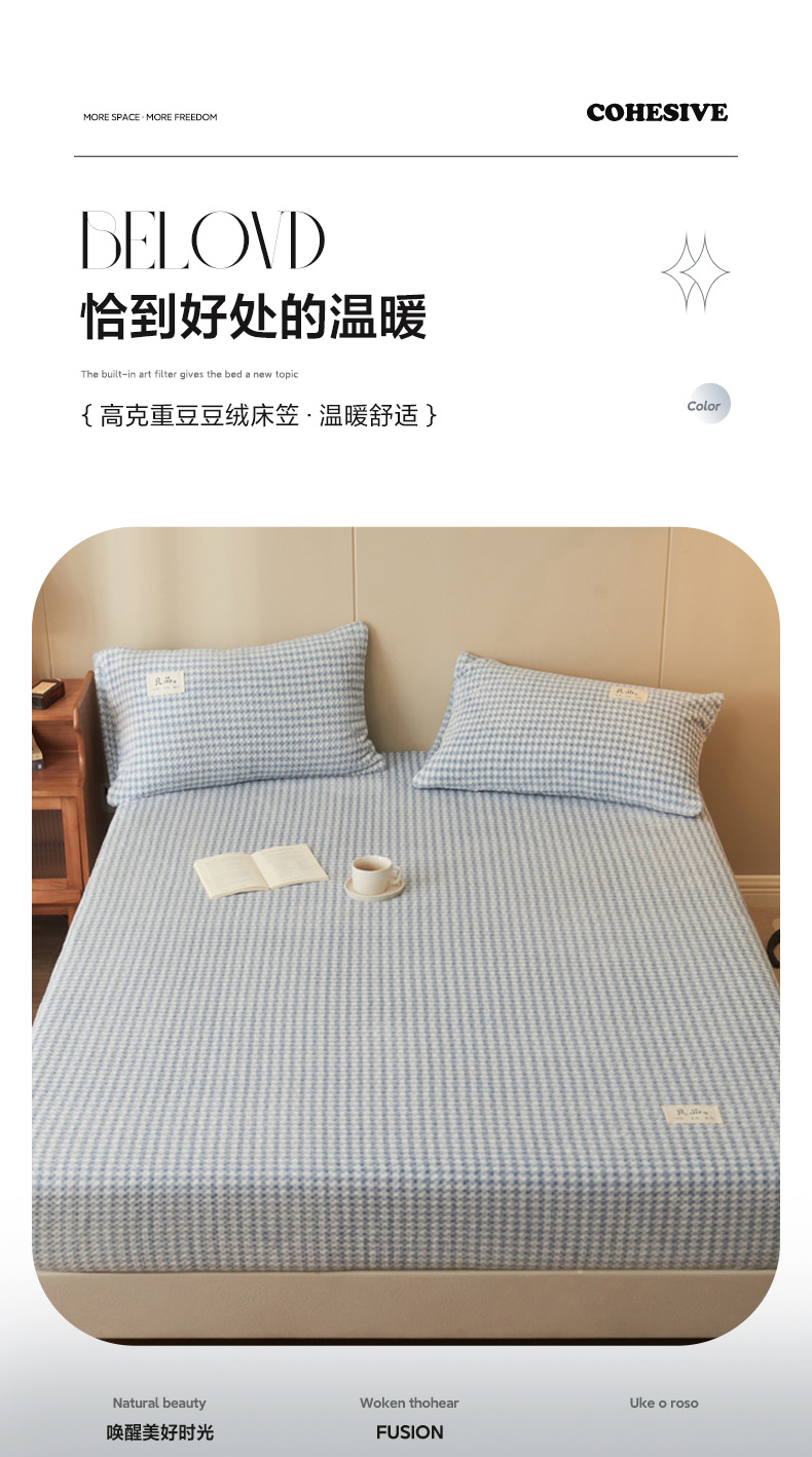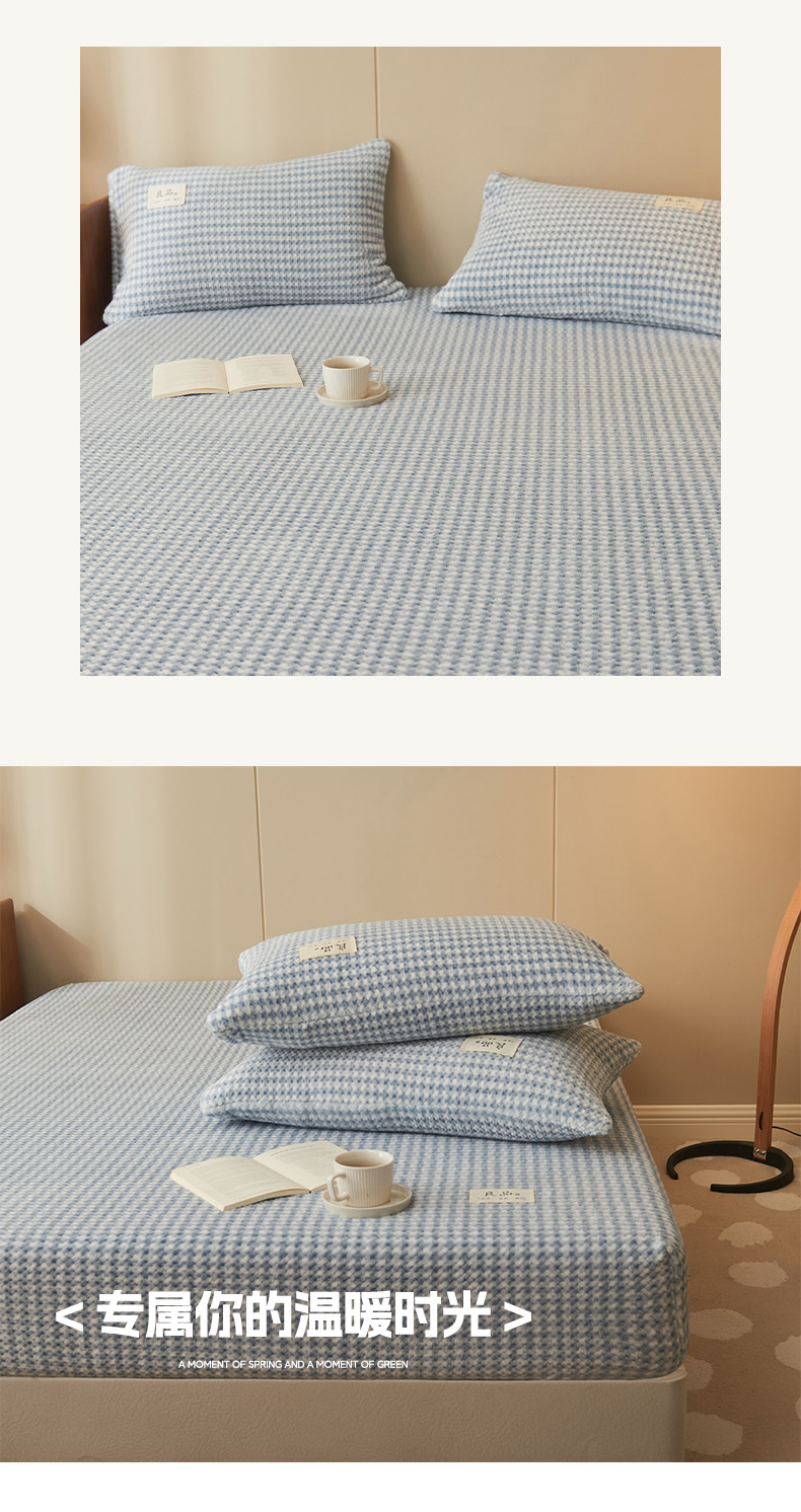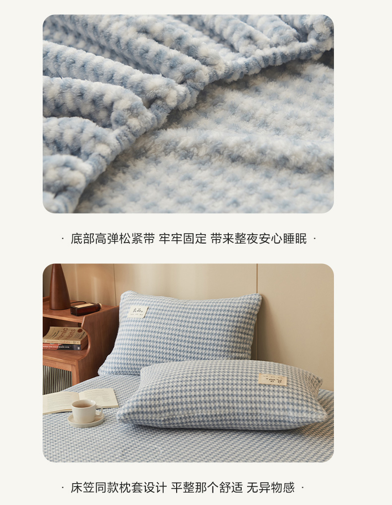 早晨家纺 2025新款豆豆款高克重牛奶绒菠萝格无印风床笠 豆豆绒-小格蓝