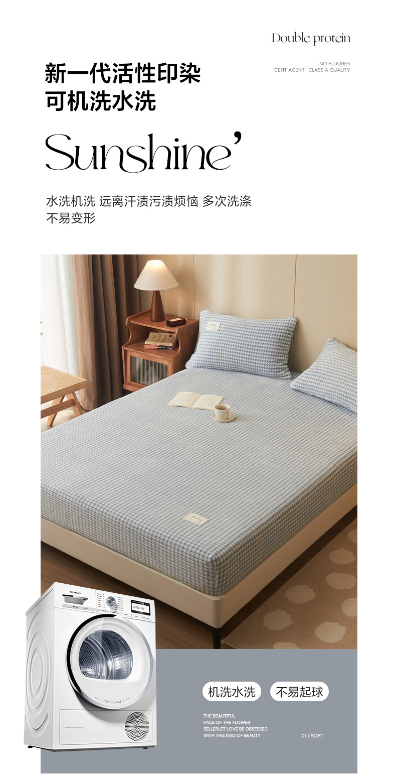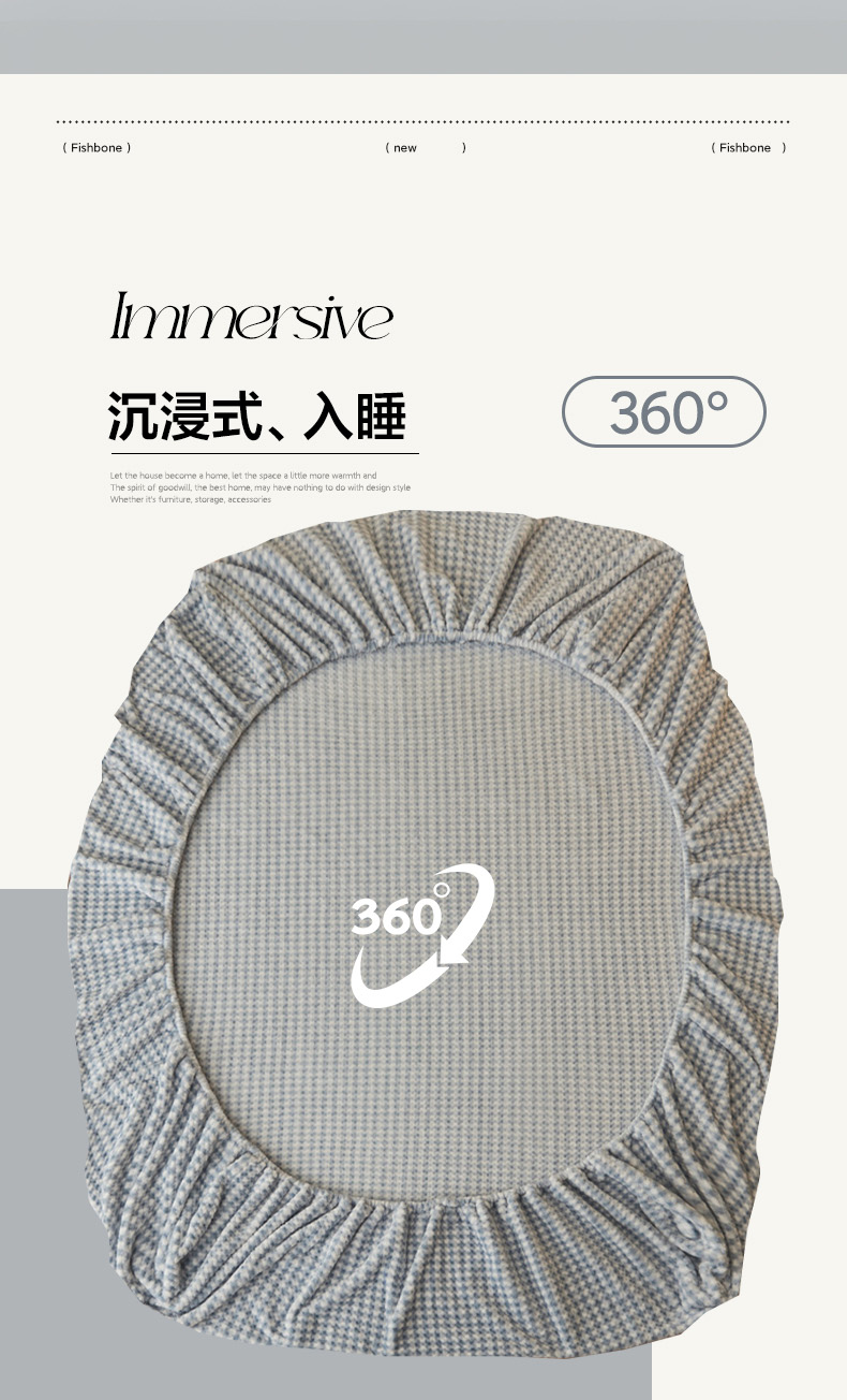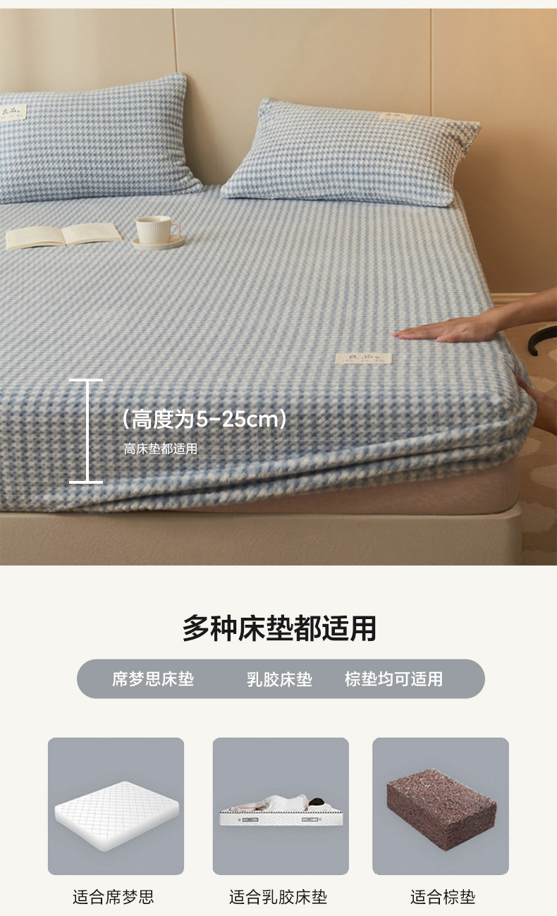 早晨家纺 2025新款豆豆款高克重牛奶绒菠萝格无印风床笠 豆豆绒-小格蓝