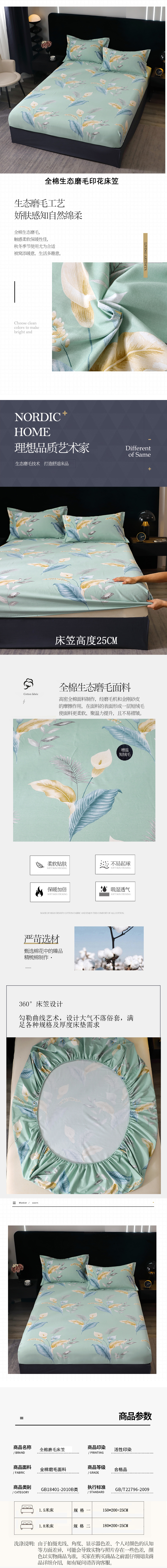 商品名称:晶缦家纺 2025叶语系·纯棉活性全棉磨毛单笠单品床笠床笠单件 云瑶蓝