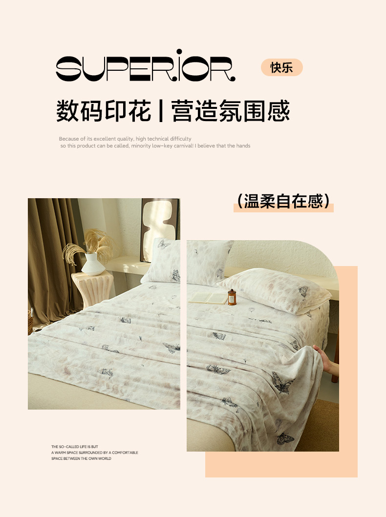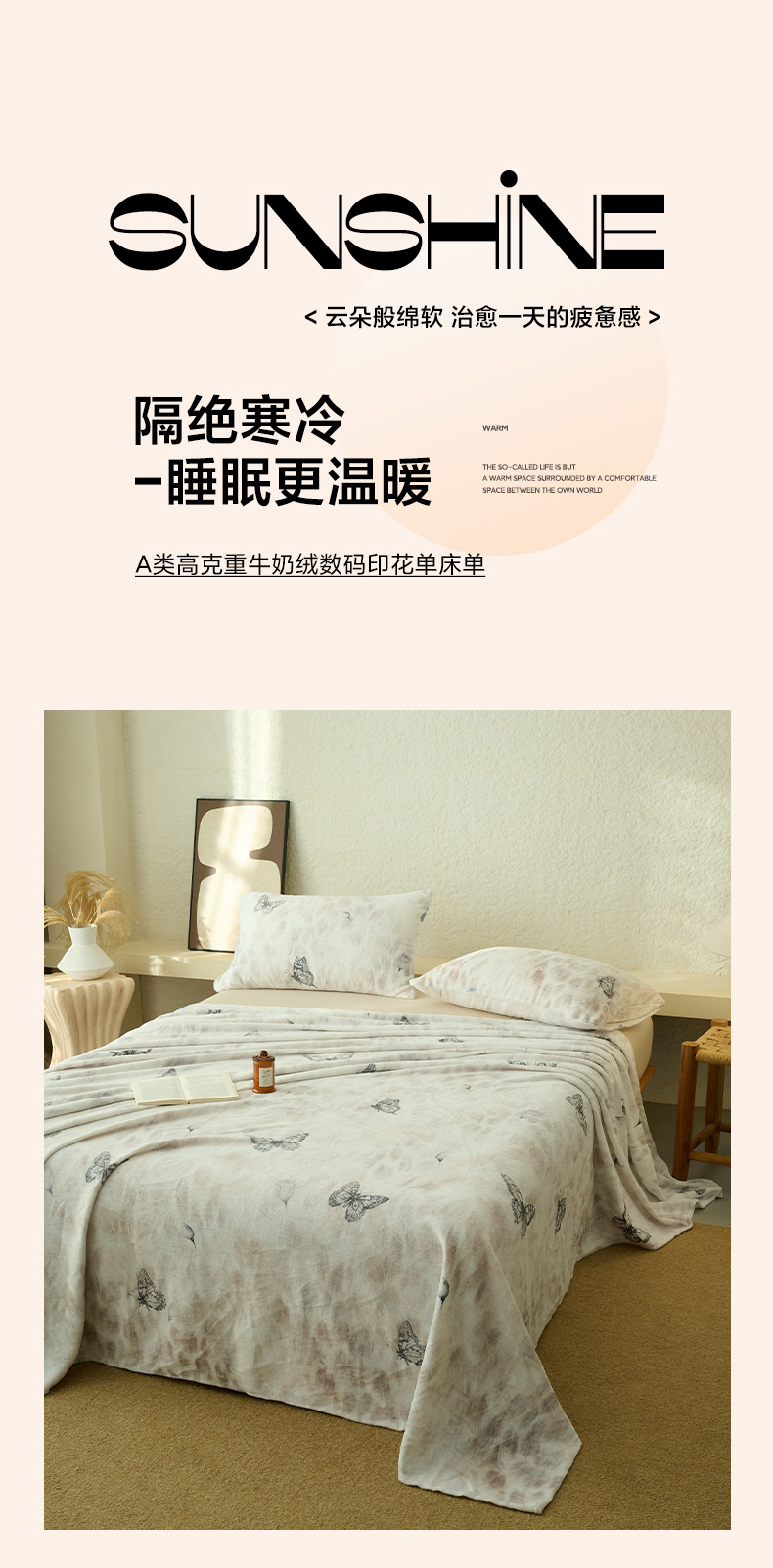 • 91家纺网 家纺一手货源 找家纺 早晨家纺 2025新款数码印花高克重牛奶单床单 浅蕊