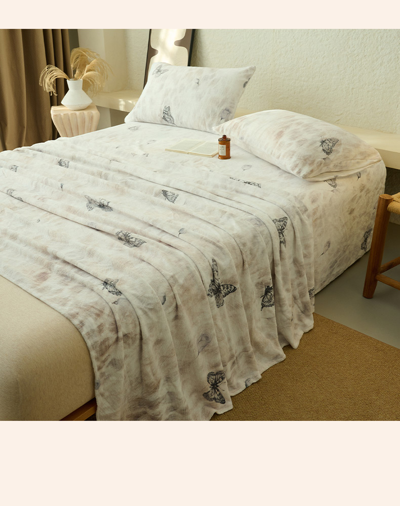早晨家纺 2025新款数码印花高克重牛奶单床单 浅蕊