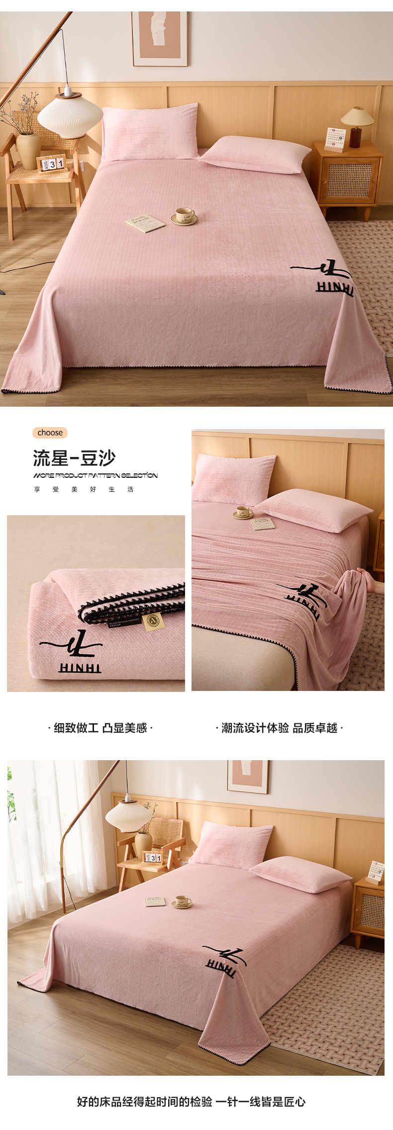 • 91家纺网 家纺一手货源 找家纺 早晨家纺 2025新款流星款高克重牛奶绒阳离子提花兔毛单床单 流星-米驼