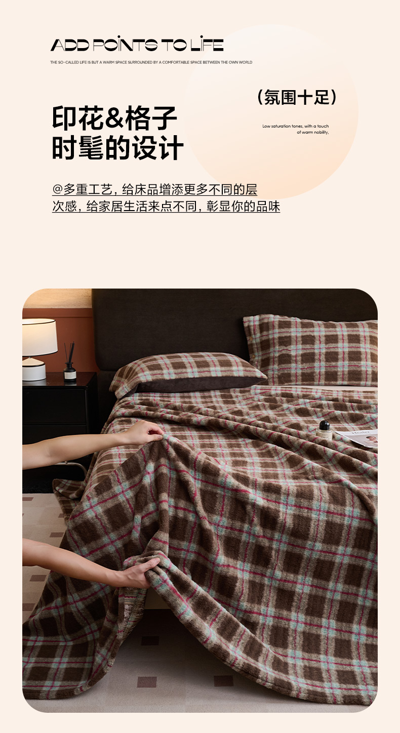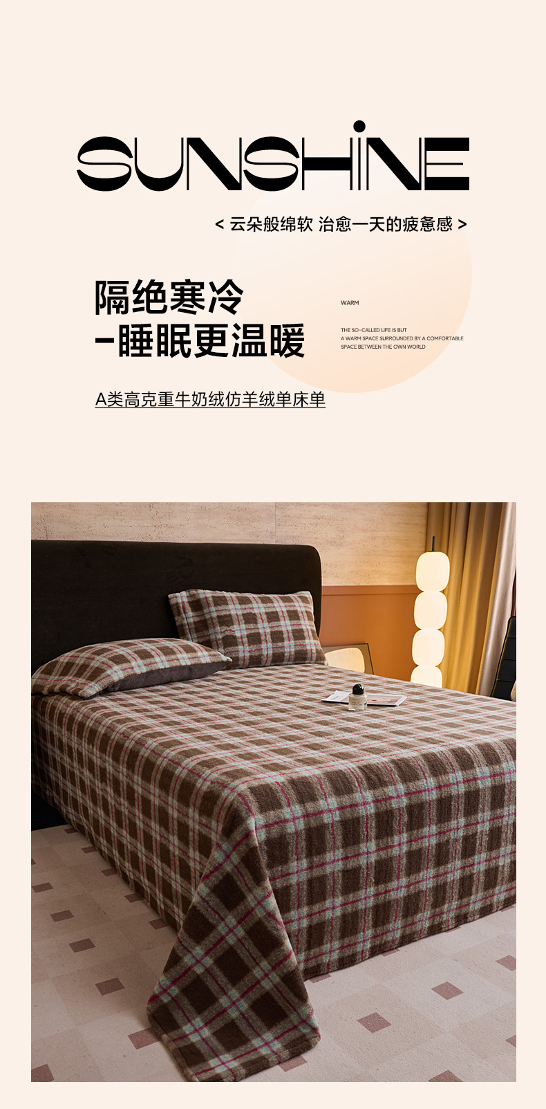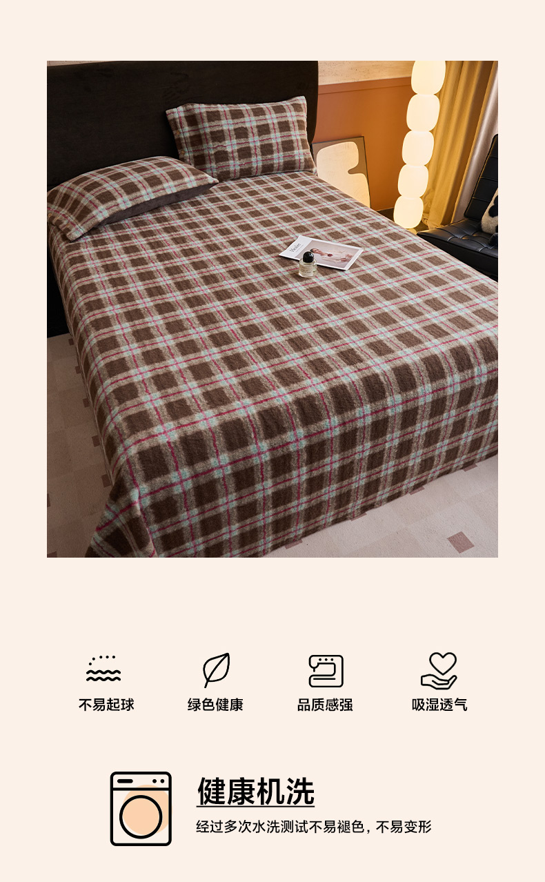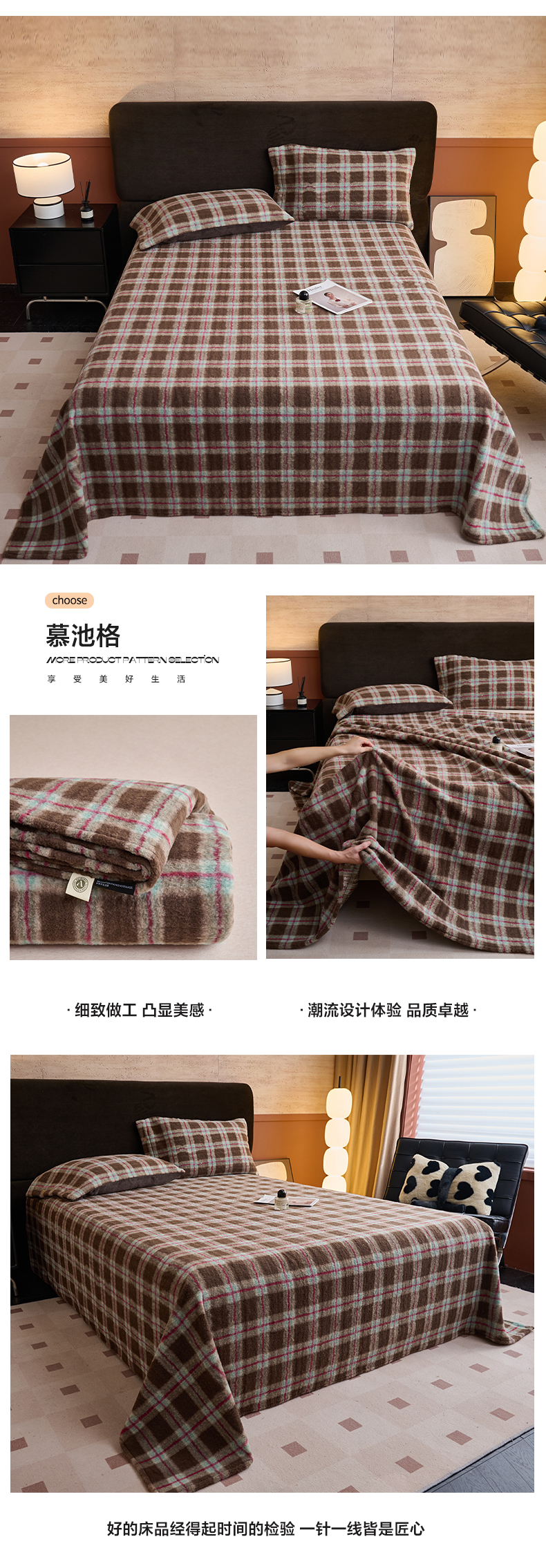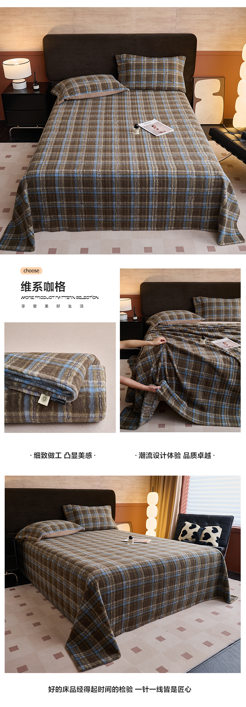 商品名称:早晨家纺 2025新款230g羊驼绒复古格牛奶绒床单 威尔士亲格