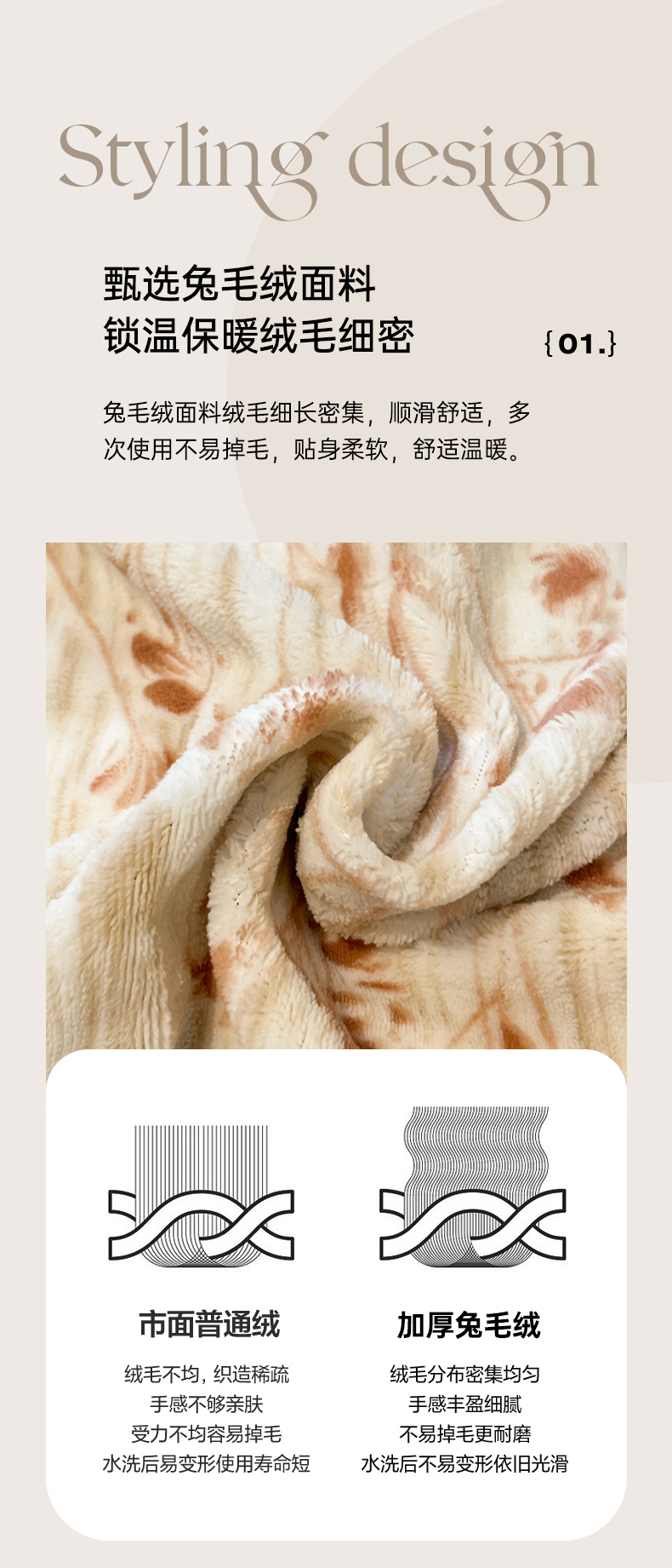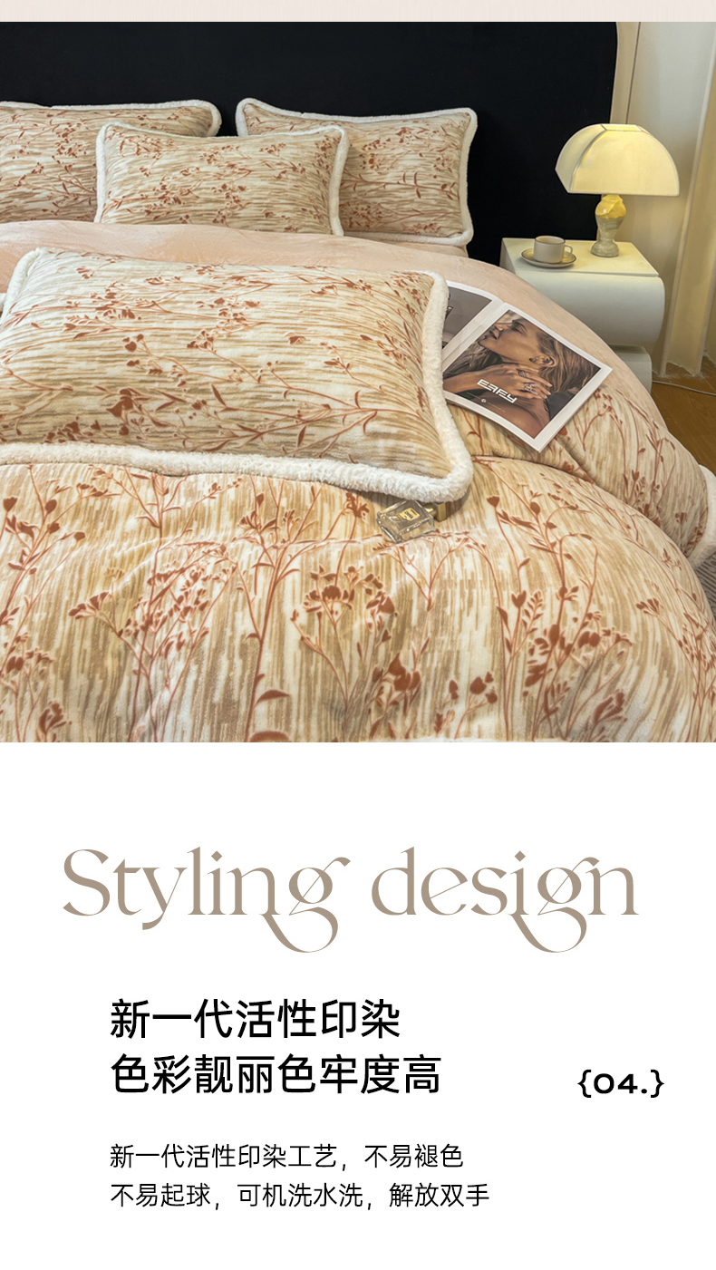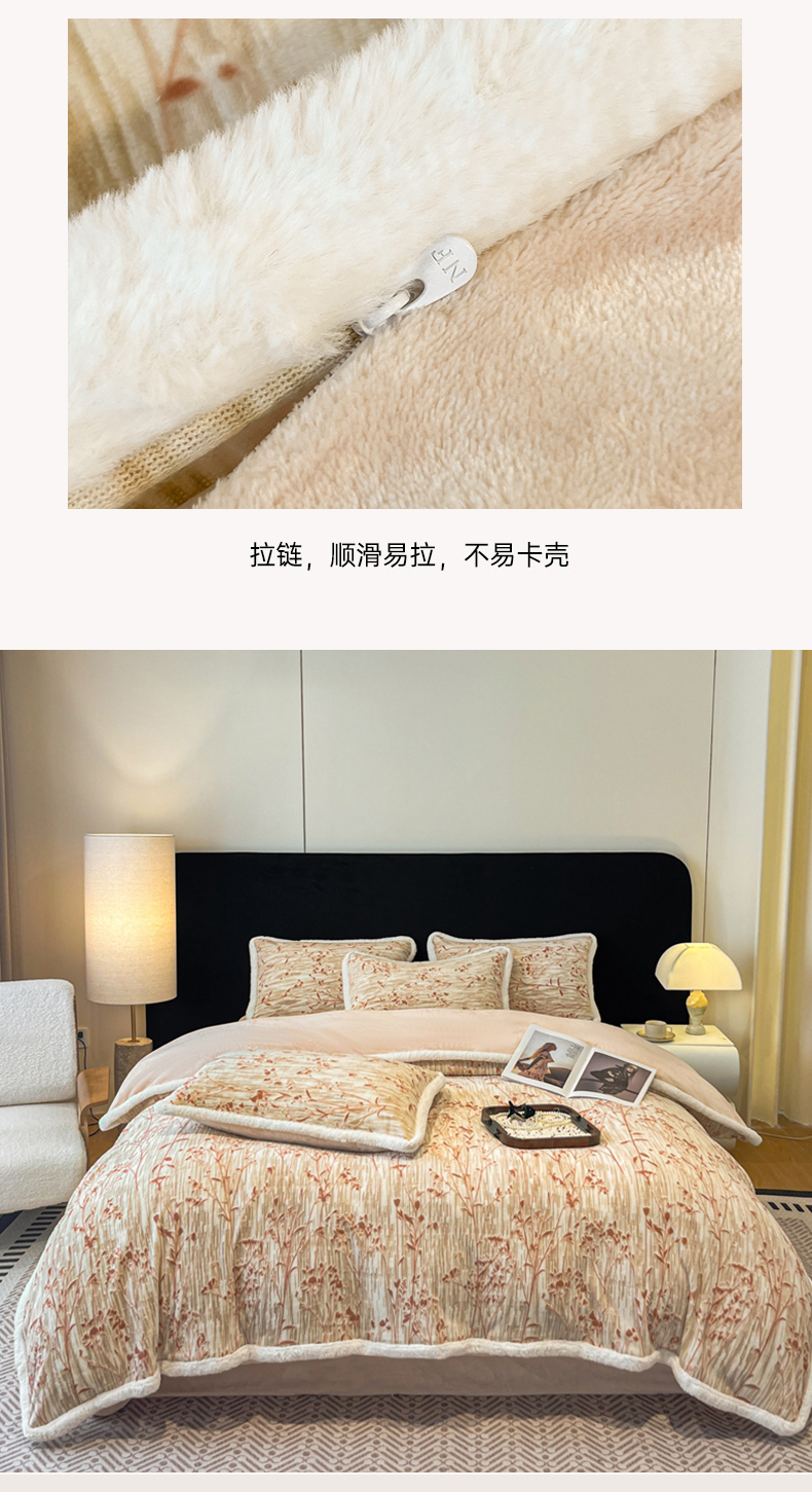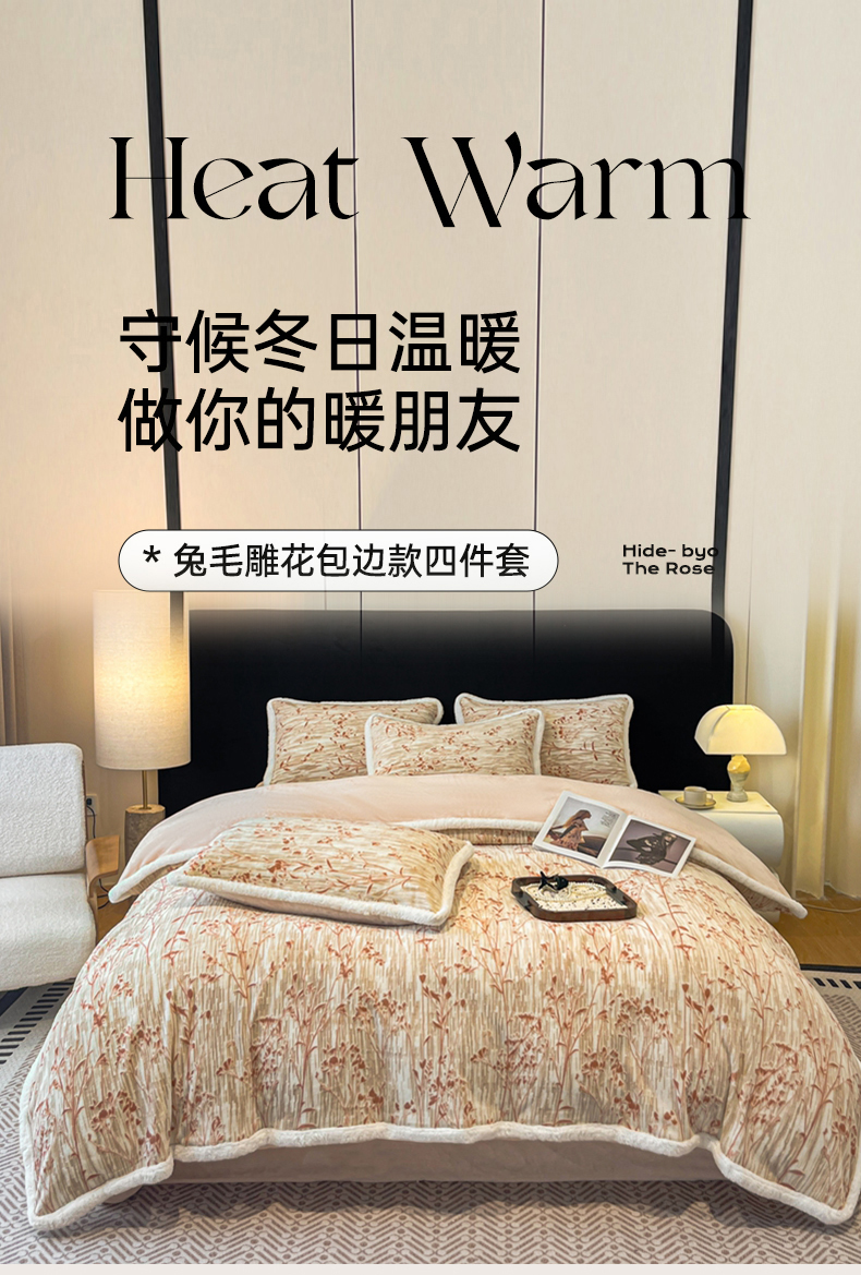 商品名称:诺梵家纺 2025新款兔毛绒包边 雕花绒四件套 栖春山