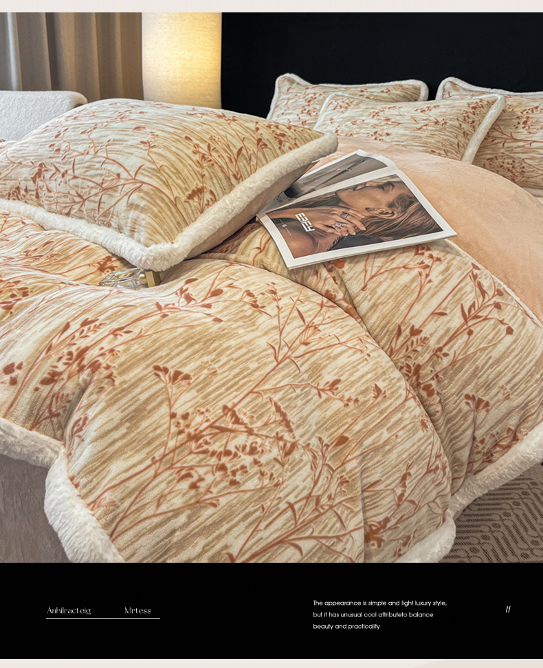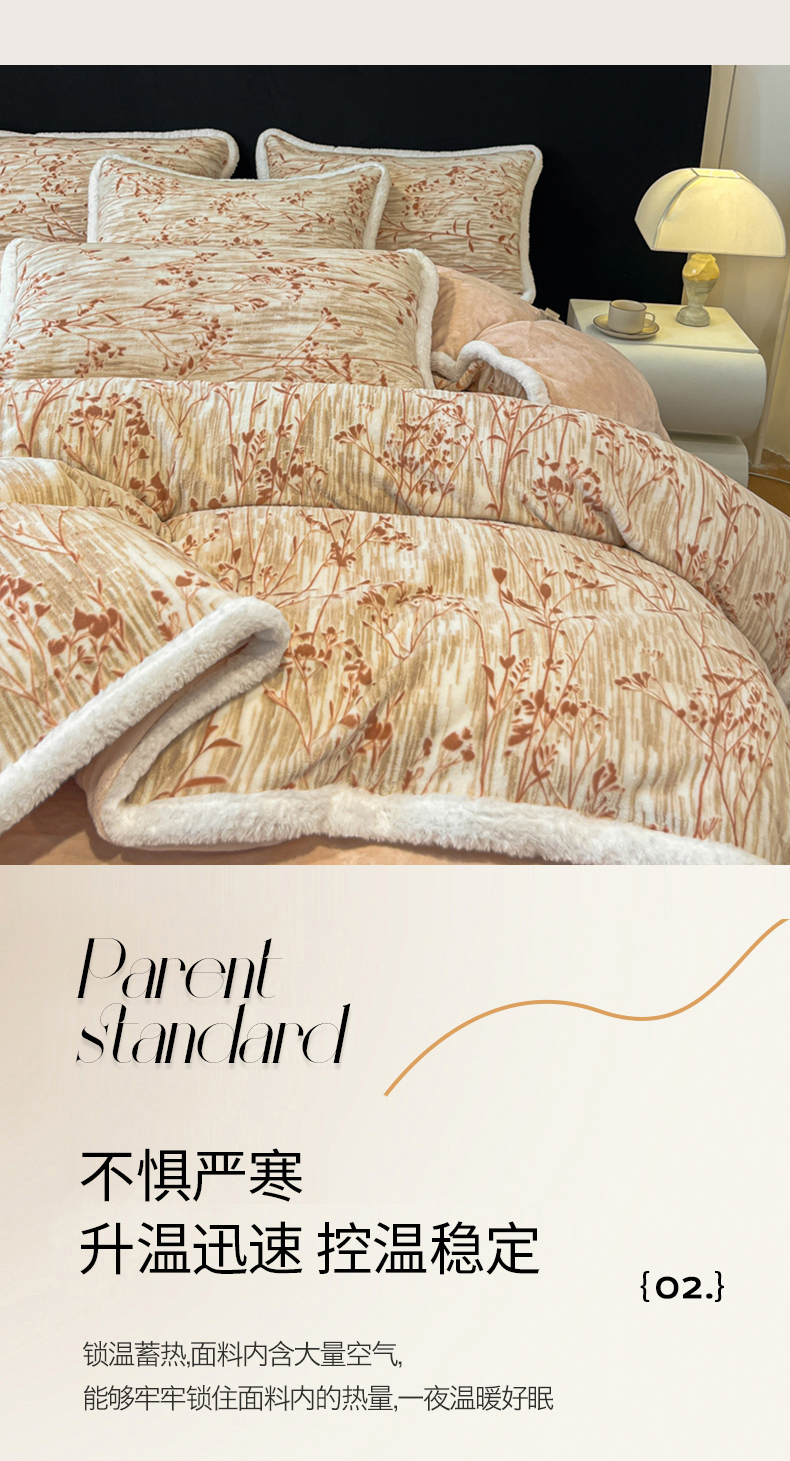 诺梵家纺 2025新款8斤加厚保暖金貂绒牛奶绒印花四件套 花枝如梦,花枝如梦