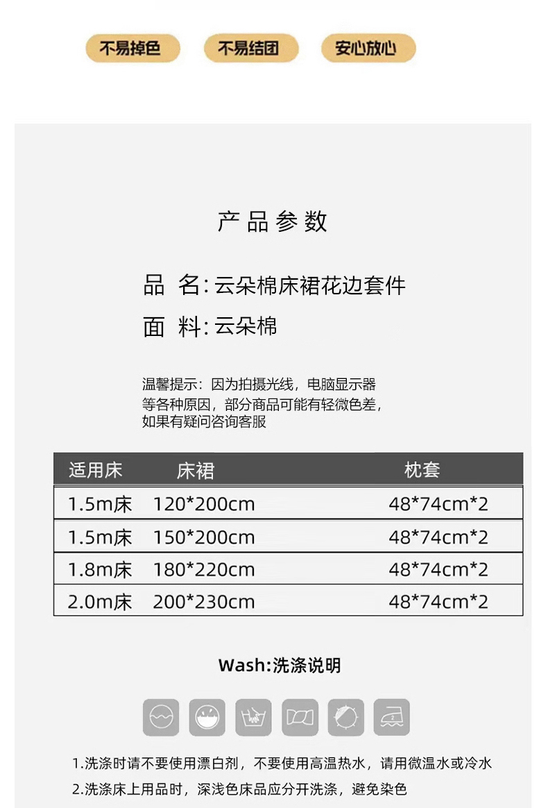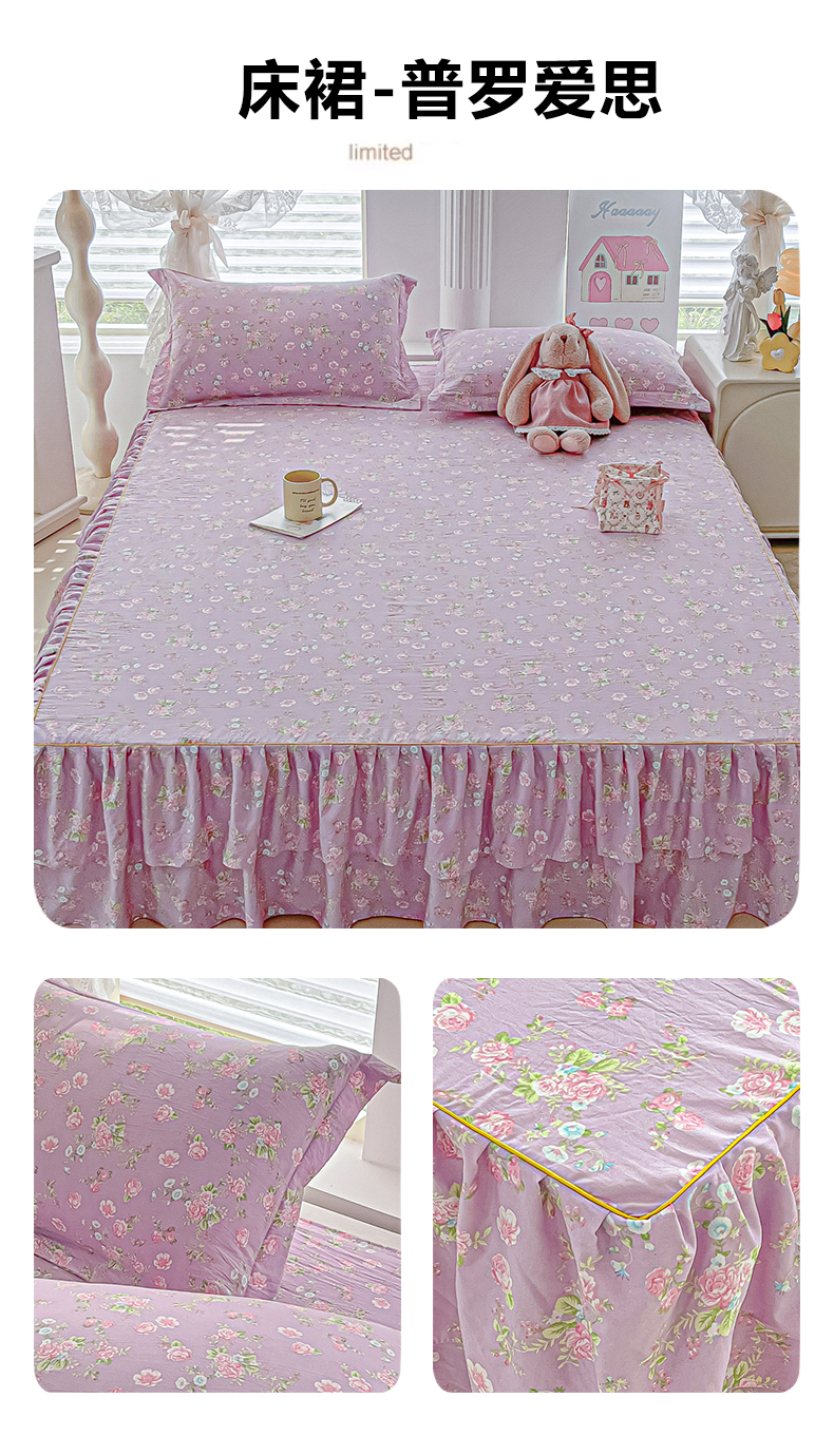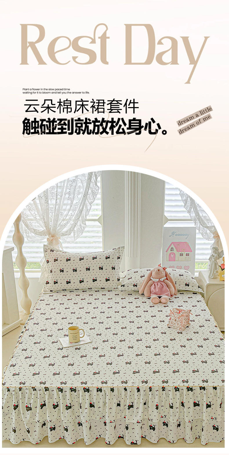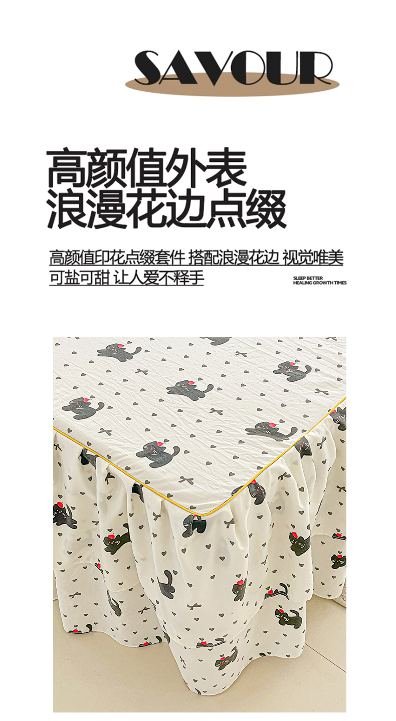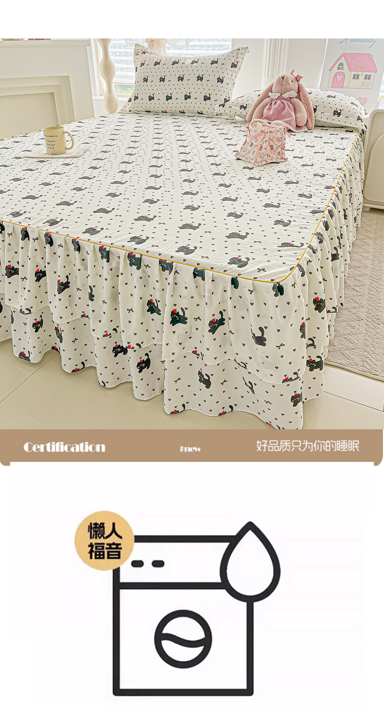 商品名称:子钦家纺 2025新款云朵棉水洗棉韩版双层花边公主风床裙床裙三件套 床裙-爱心喵