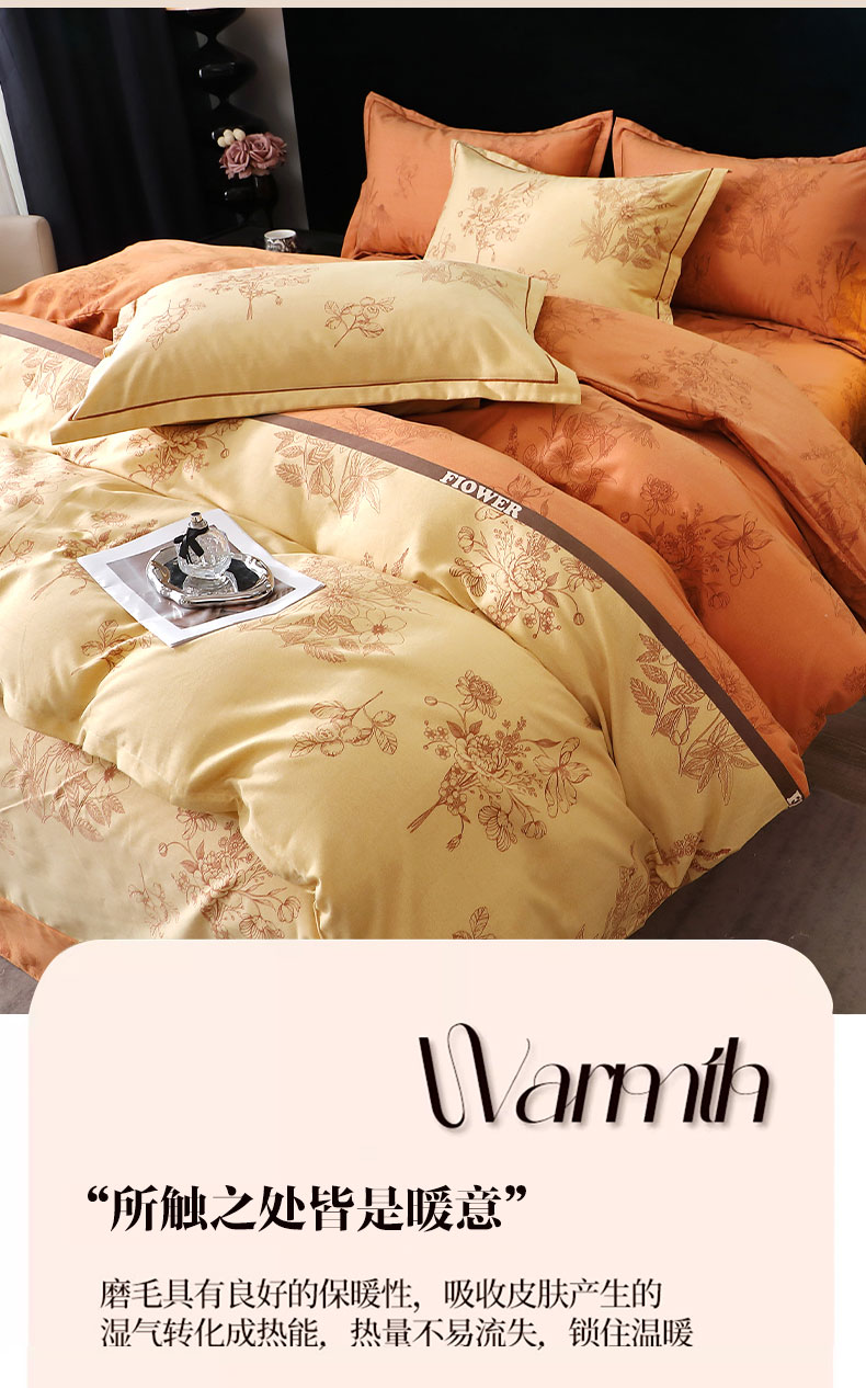 当前位置: 91家纺网 > 商品网购 > 床品套件 > 四件套 > 全棉普通四件套 > 晶缦家纺 2025叶语系·纯棉活性全棉磨毛四件套 美兮咖