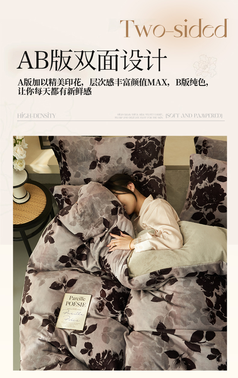 (总)金鹰 2025新款A类雕花牛奶绒烂花兔毛包边四件套,羽毛,波澜壮阔,繁花,蝴蝶梦,简爱,兰花,玫瑰物语,梦幻森林,清晨玫瑰,羽叶,仲夏晨歌
