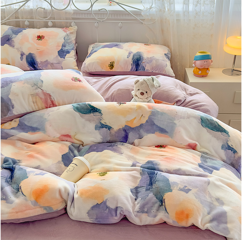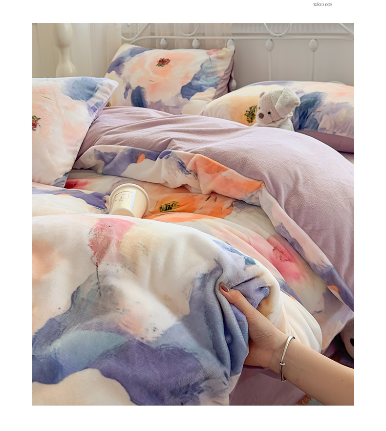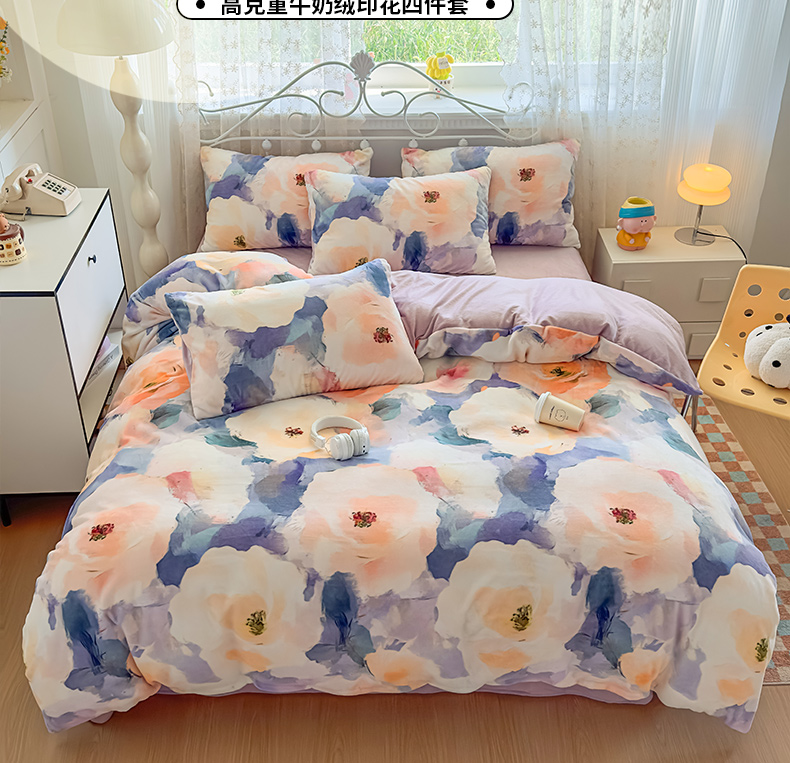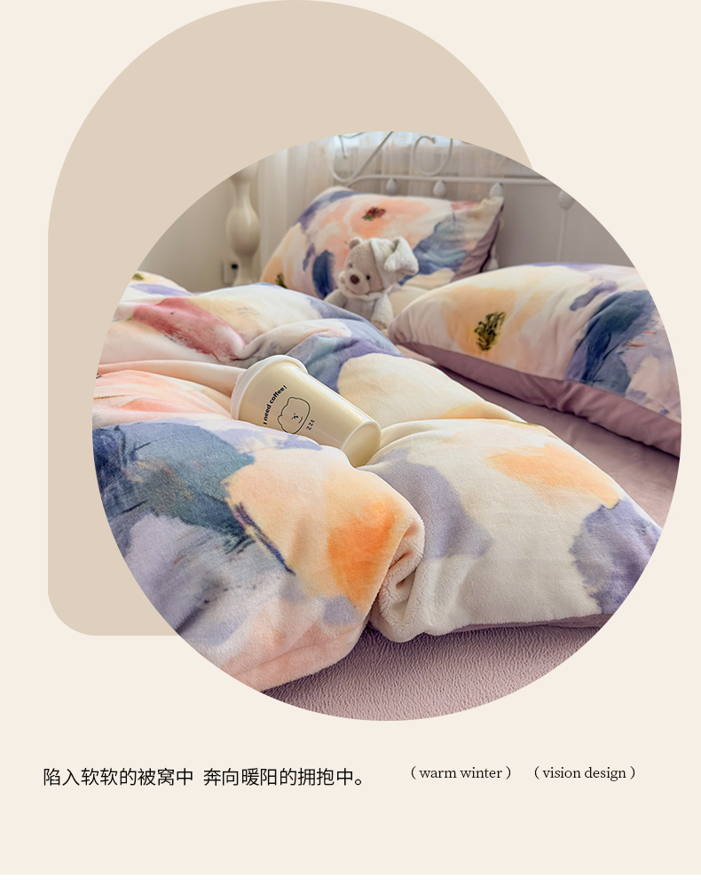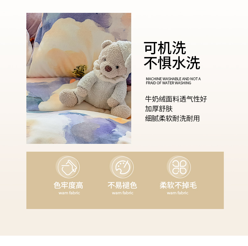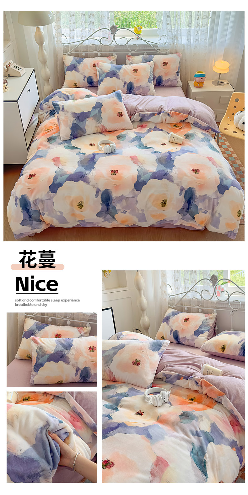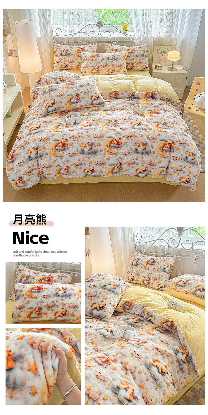 商品名称:(总)悦织湾家纺 2025新款5D数码牛奶绒印花轻奢时尚秋冬高克重加厚加密保暖床上用品三四件套