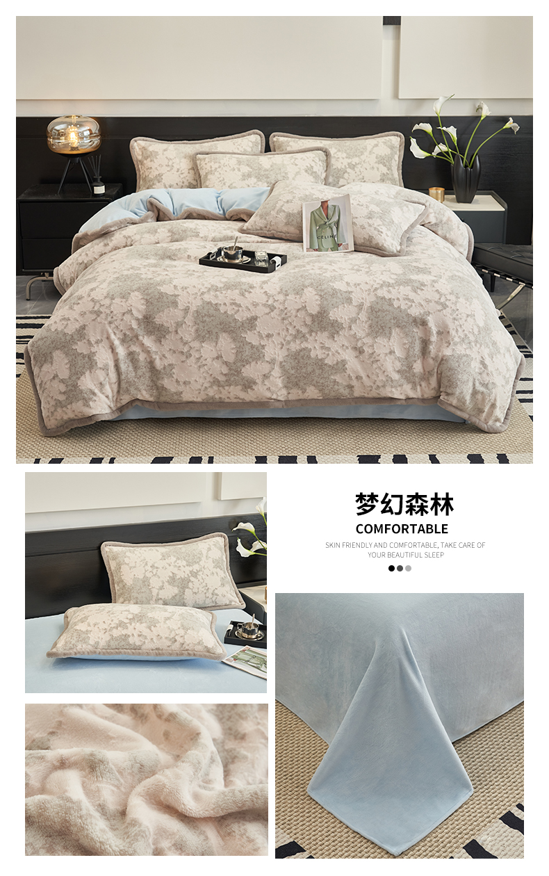(总)金鹰 2025新款A类雕花牛奶绒烂花兔毛包边四件套,羽毛,波澜壮阔,繁花,蝴蝶梦,简爱,兰花,玫瑰物语,梦幻森林,清晨玫瑰,羽叶,仲夏晨歌