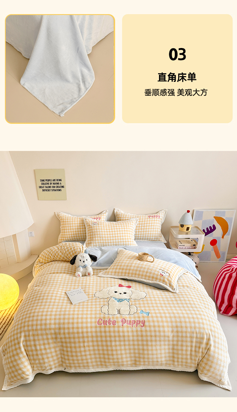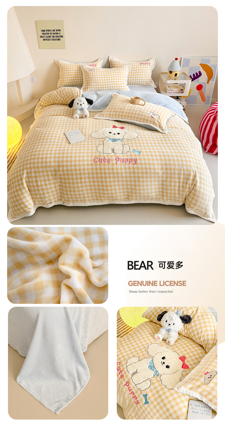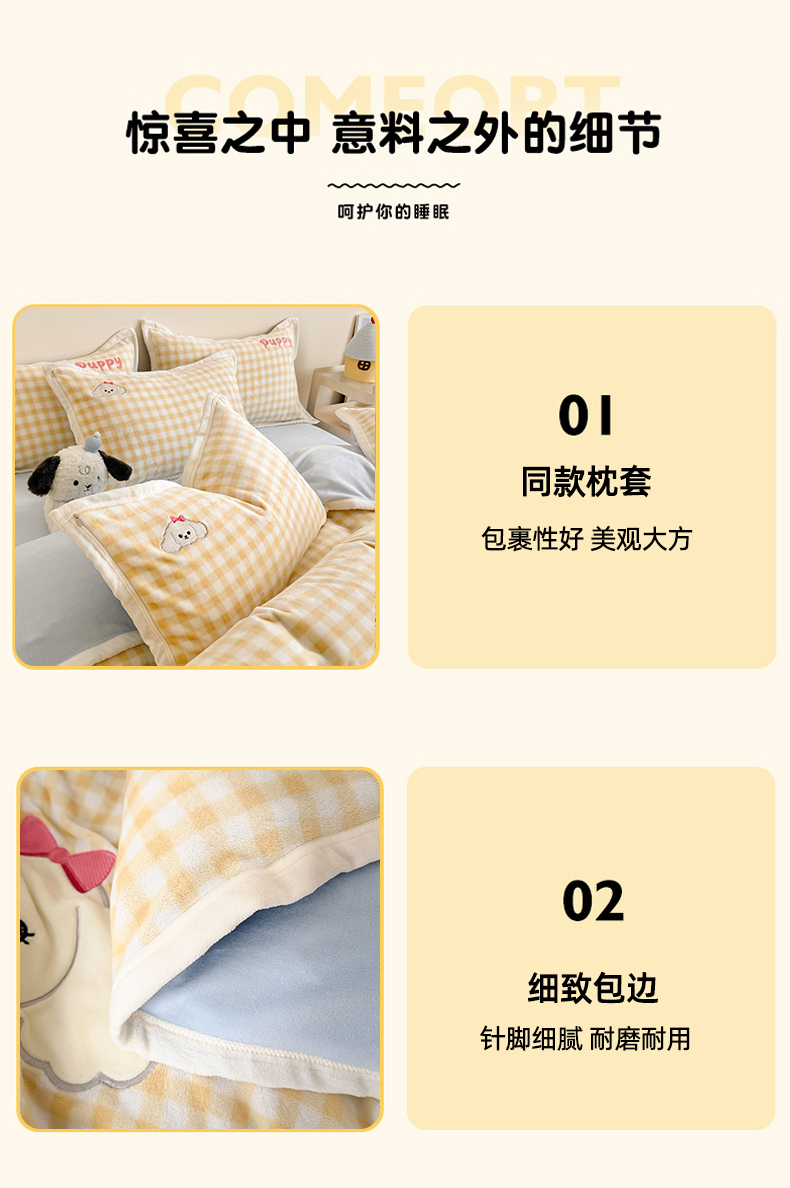 商品名称:艾特你 2025新款200克全工艺高克重牛奶绒贴布绣大包边四件套 可爱多