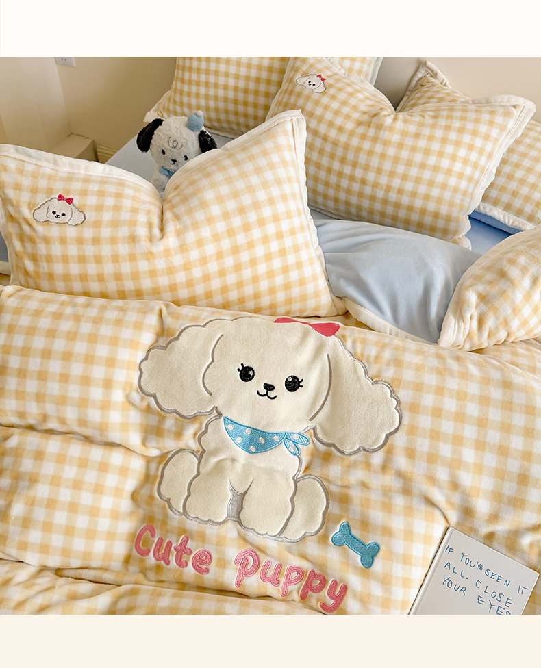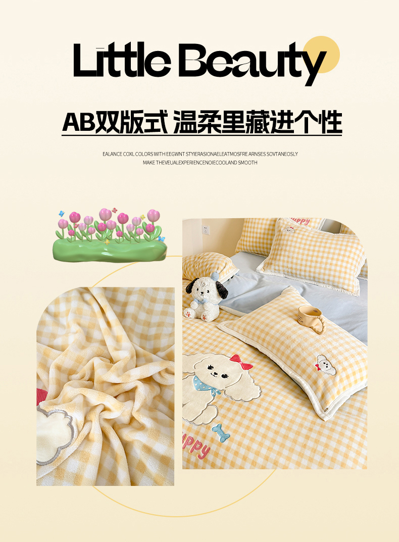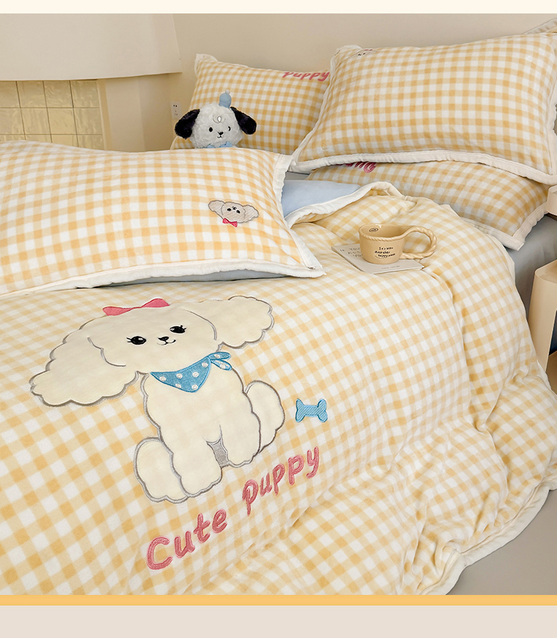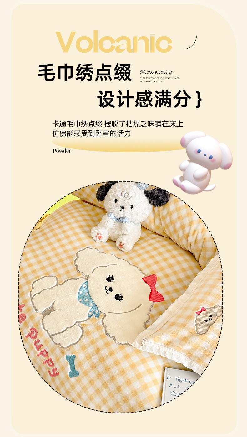 商品名称:艾特你 2025新款200克全工艺高克重牛奶绒贴布绣大包边四件套 可爱多
