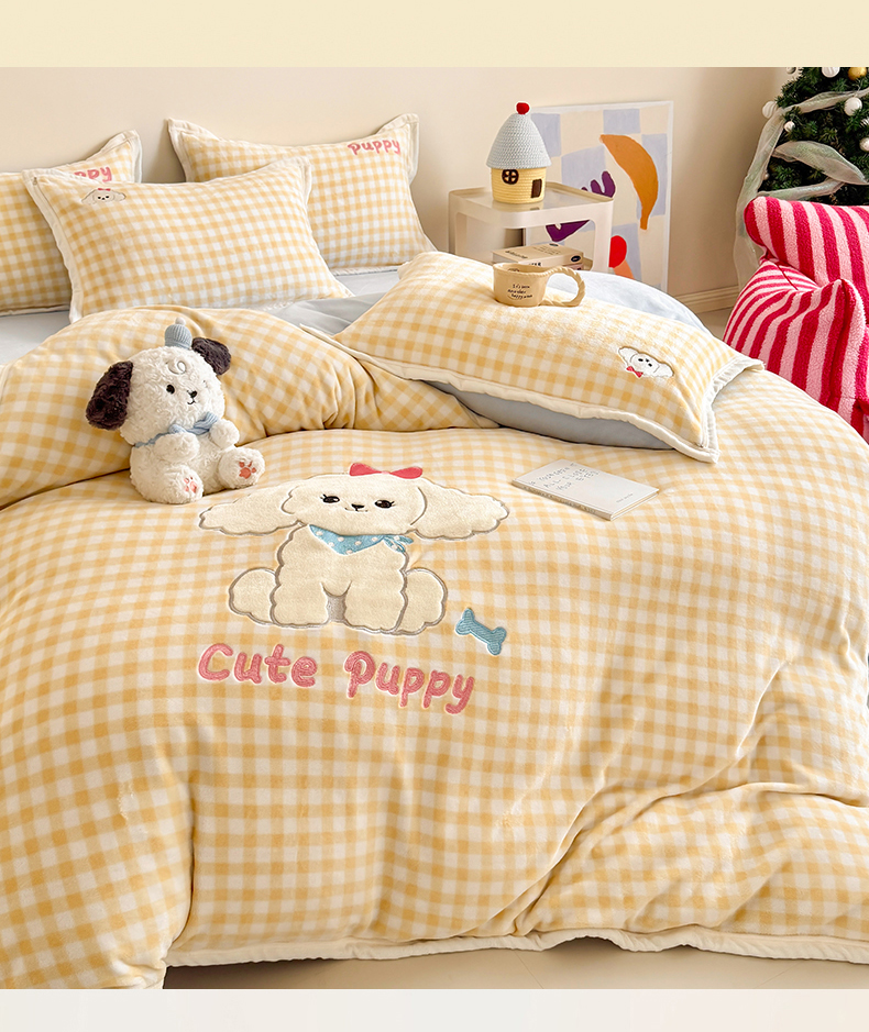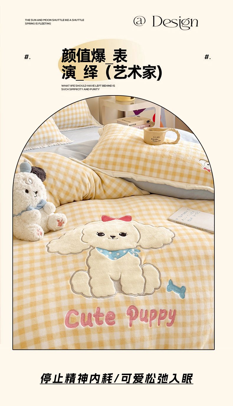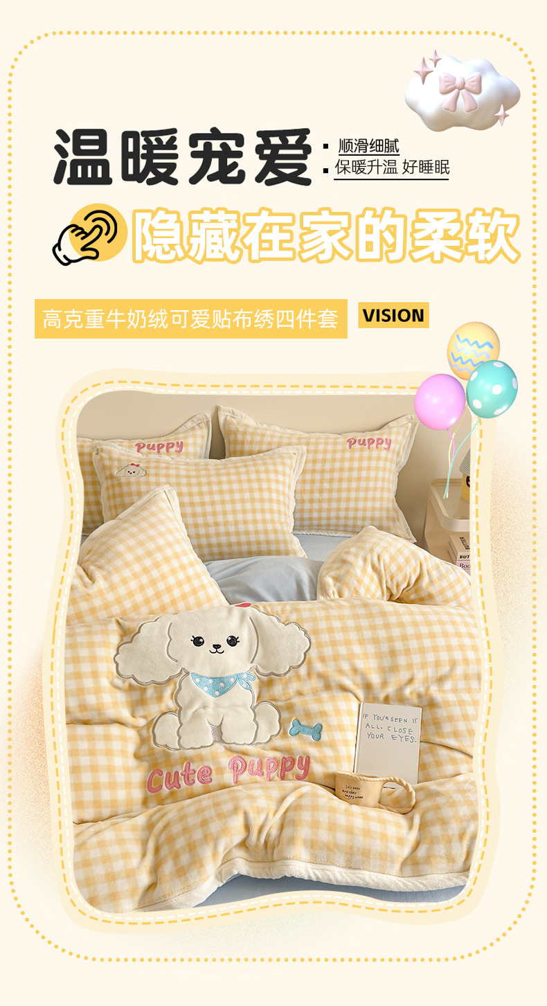 艾特你 2025新款200克全工艺高克重牛奶绒贴布绣大包边四件套 可爱多