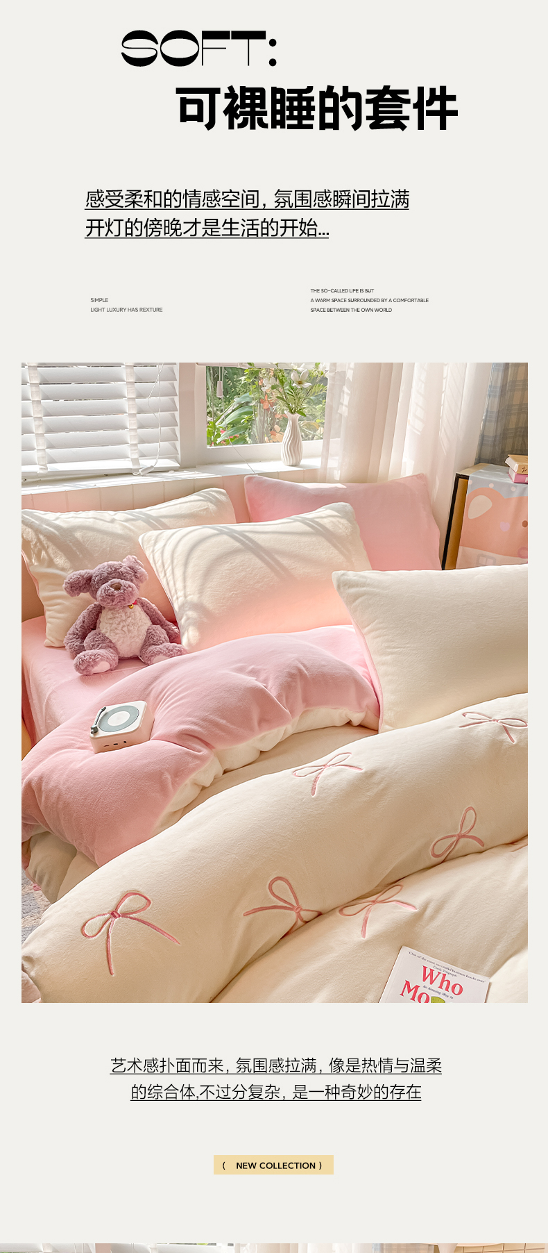 当前位置: 91家纺网 > 商品网购 > 床品套件 > 四件套 > 牛奶绒四件套 > 仔仔熊 2025新款牛奶绒刺绣四件套 奶糖蝴蝶结-粉
