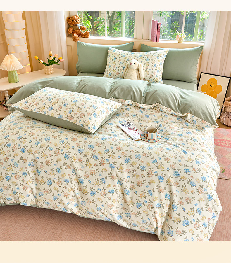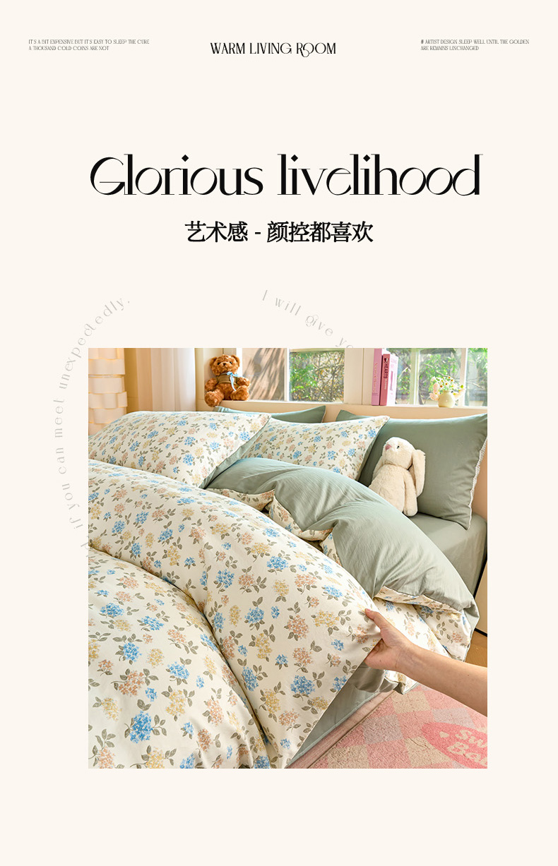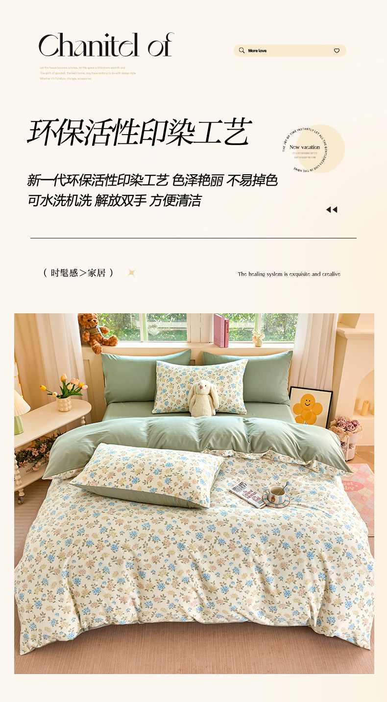 商品名称:卢赛尔 2025新款亲肤水洗珍珠棉印花单被套 山茶-绿