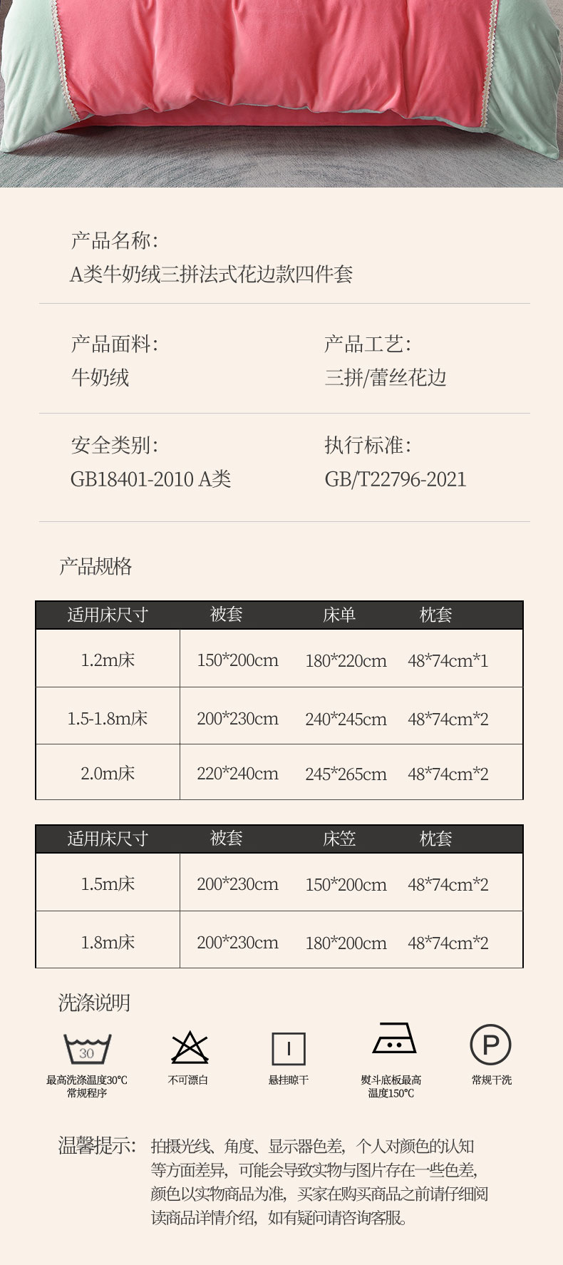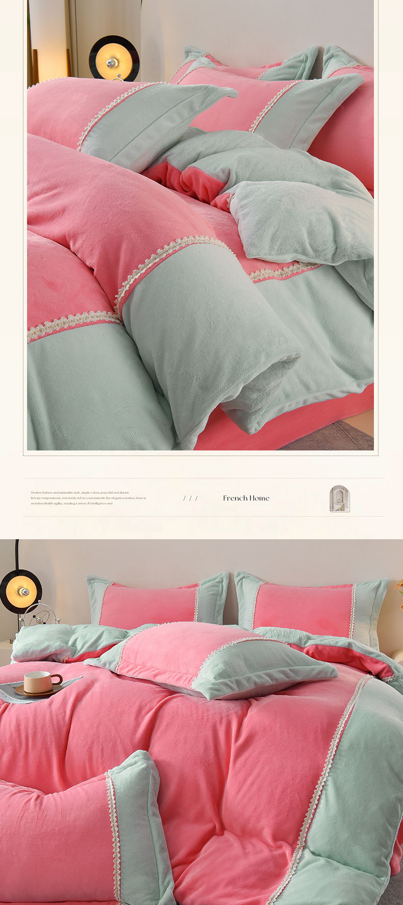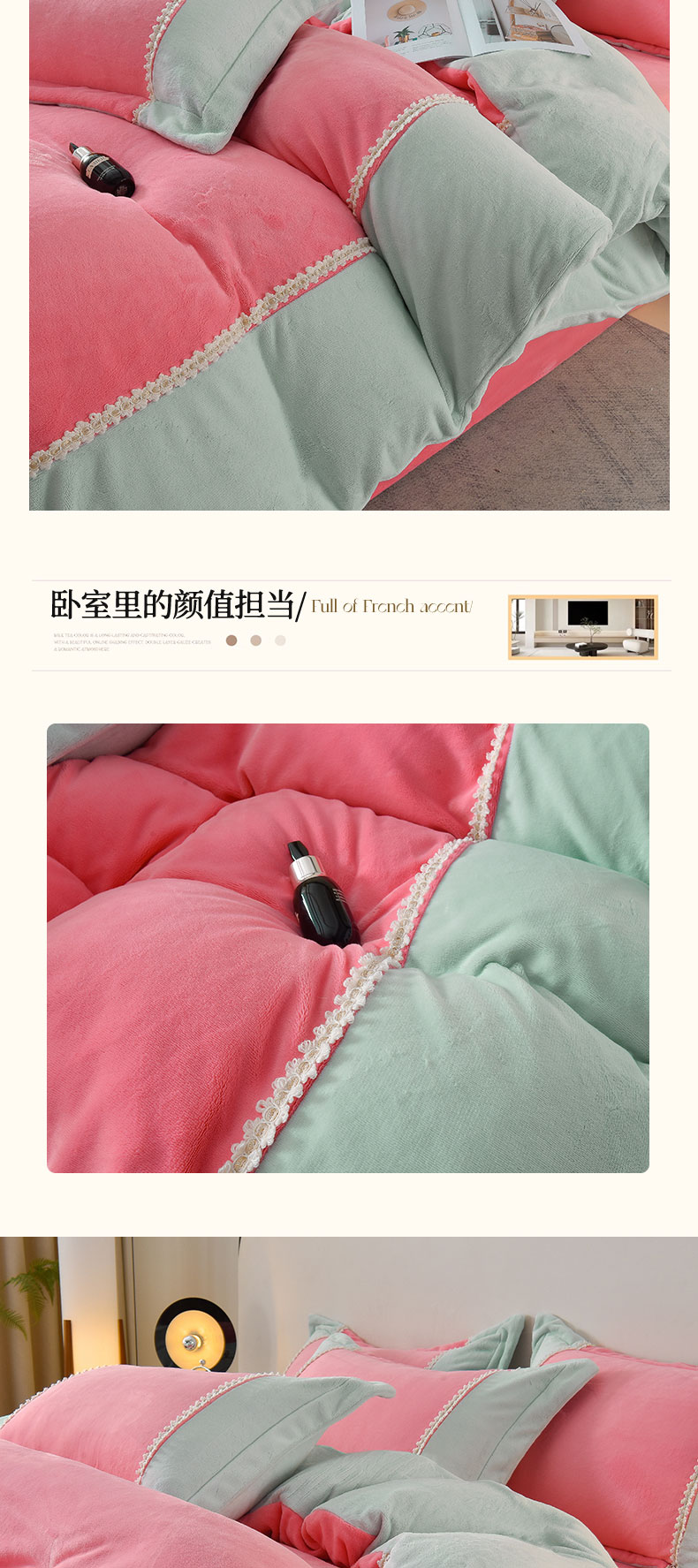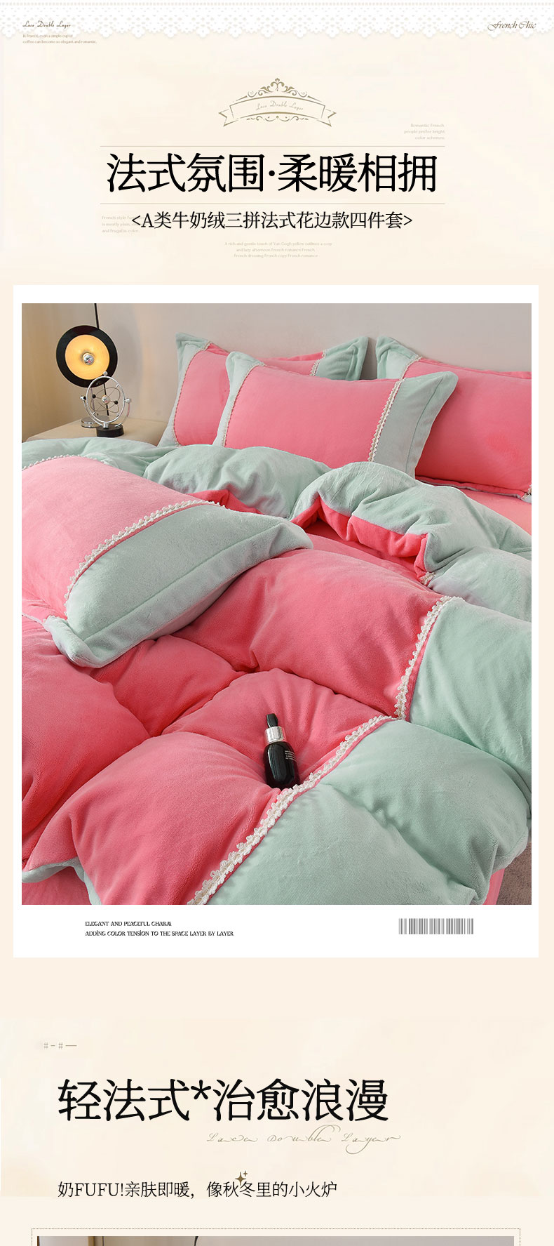 当前位置: 91家纺网 > 商品网购 > 床品套件 > 四件套 > 牛奶绒四件套 > 眷恋家纺 2025新款A类牛奶绒三拼法式花边款四件套-蒂凡妮 蒂凡妮-玫红绿