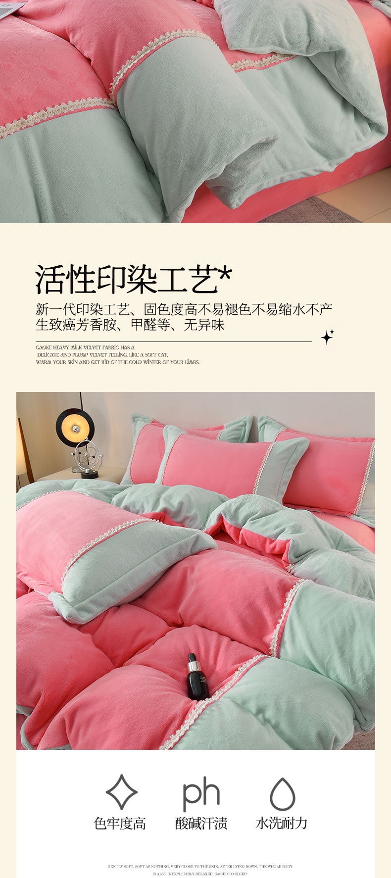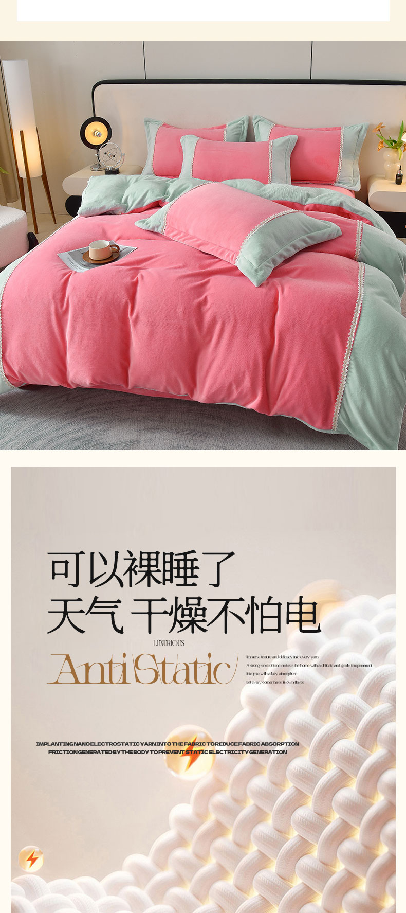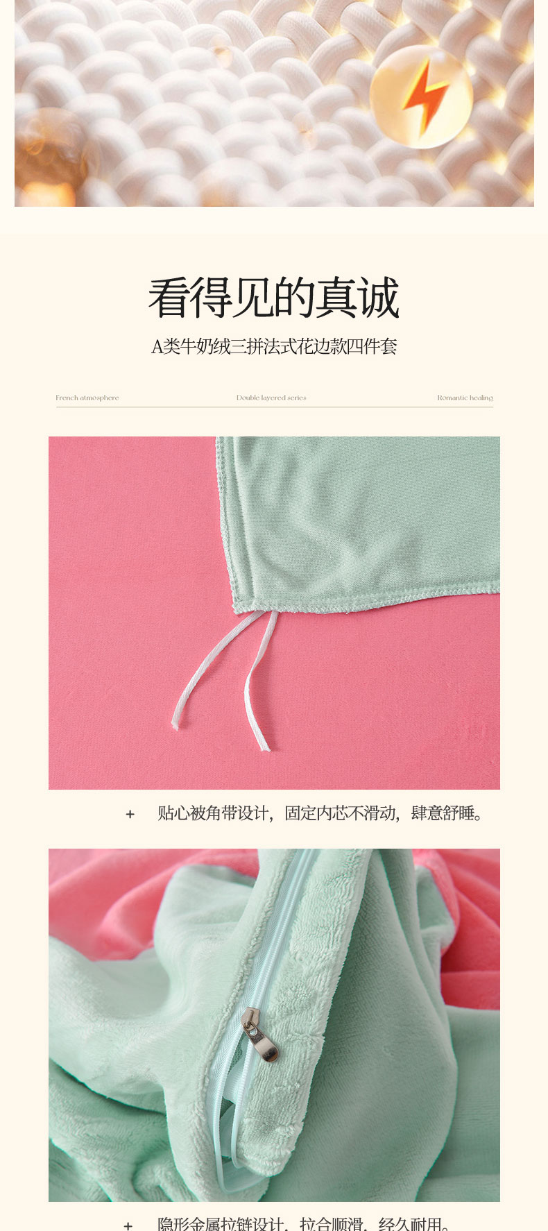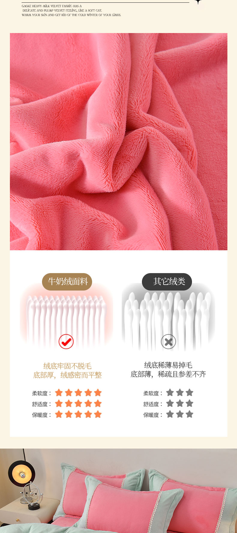 当前位置: 91家纺网 > 商品网购 > 床品套件 > 四件套 > 牛奶绒四件套 > 眷恋家纺 2025新款A类牛奶绒三拼法式花边款四件套-蒂凡妮 蒂凡妮-玫红绿