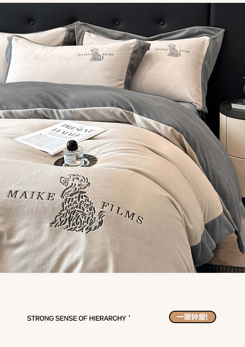 眷恋家纺 2025新款牛奶绒加厚卡通刺绣四件套-旺仔 旺仔-山灰+中灰