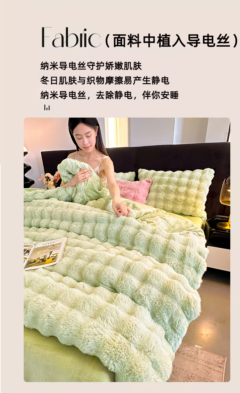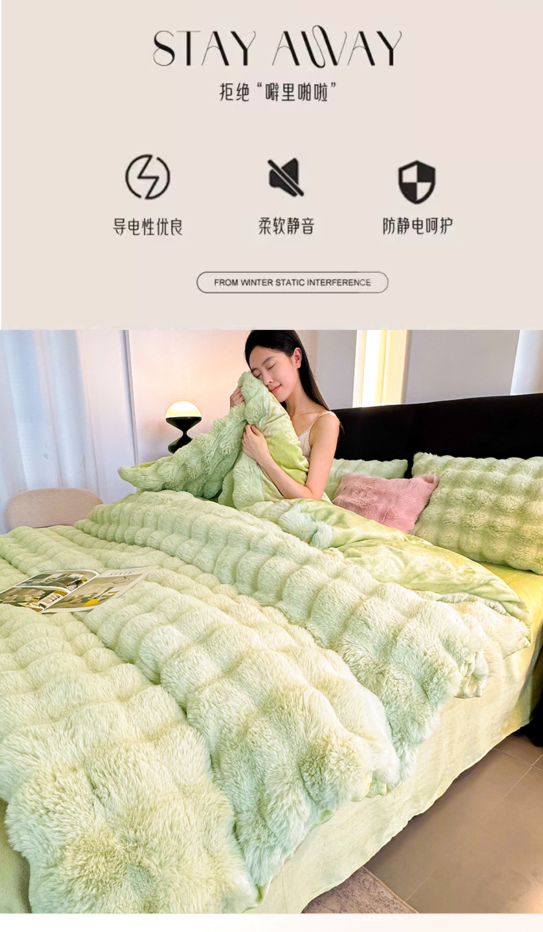 (总)无瑕家居 2025新款兔兔绒印花四件套,丁香紫,青青绿,淡雅灰,豆沙粉