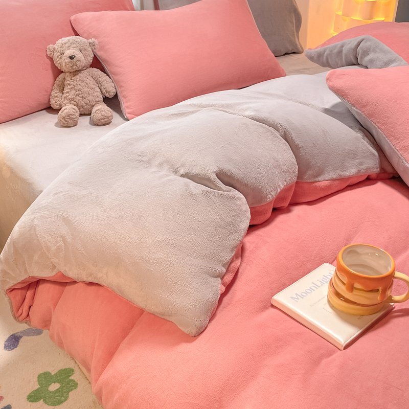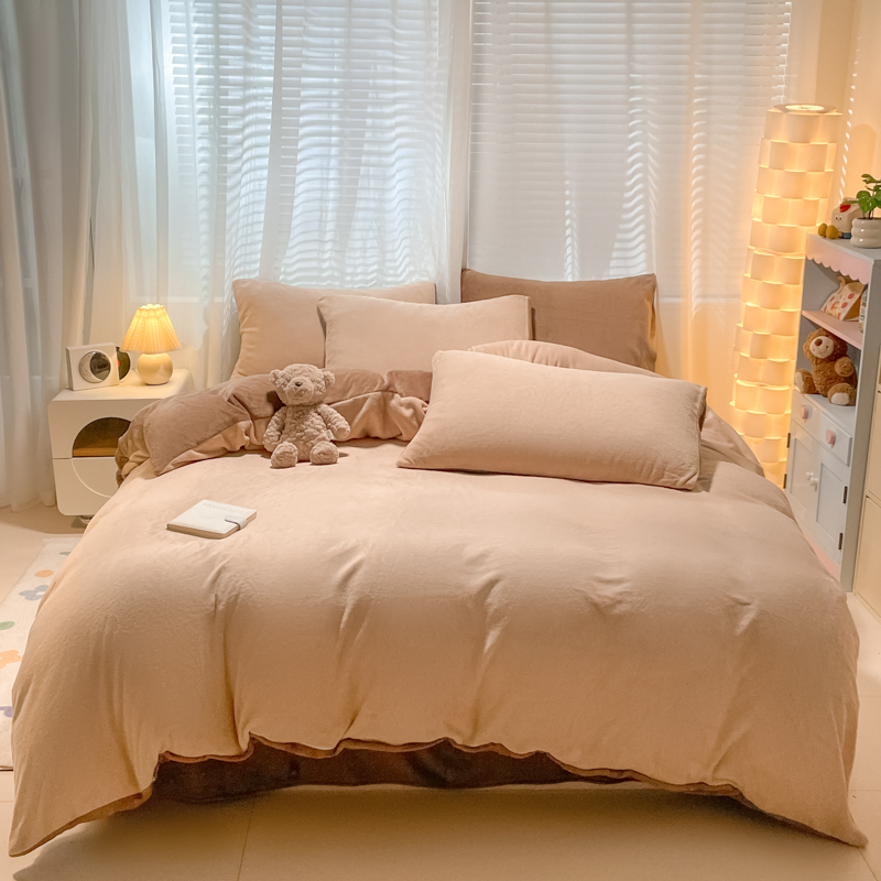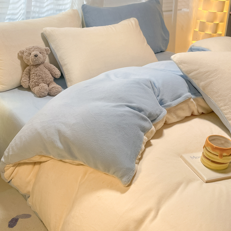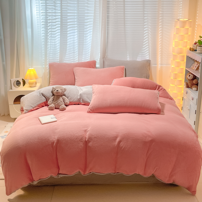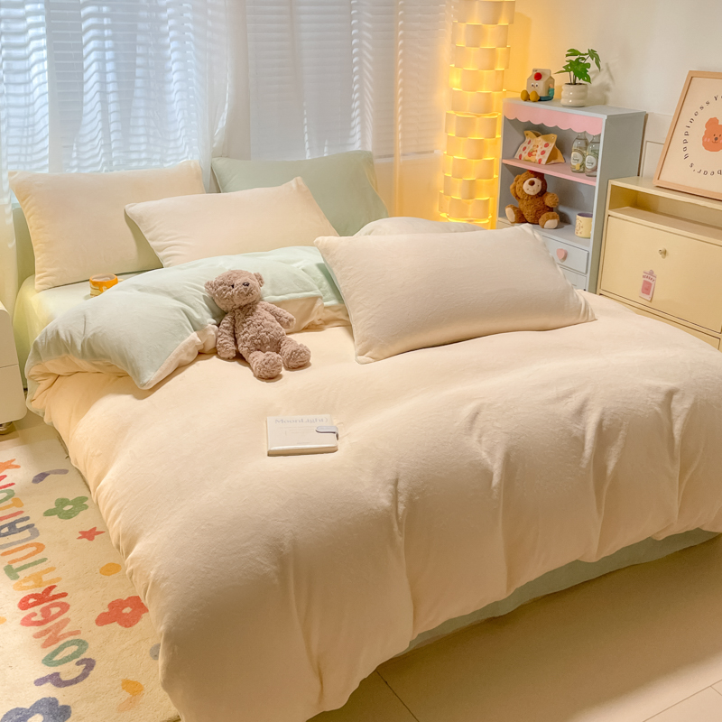 (总)仔仔熊 2025新款牛奶绒纯色双拼四件套