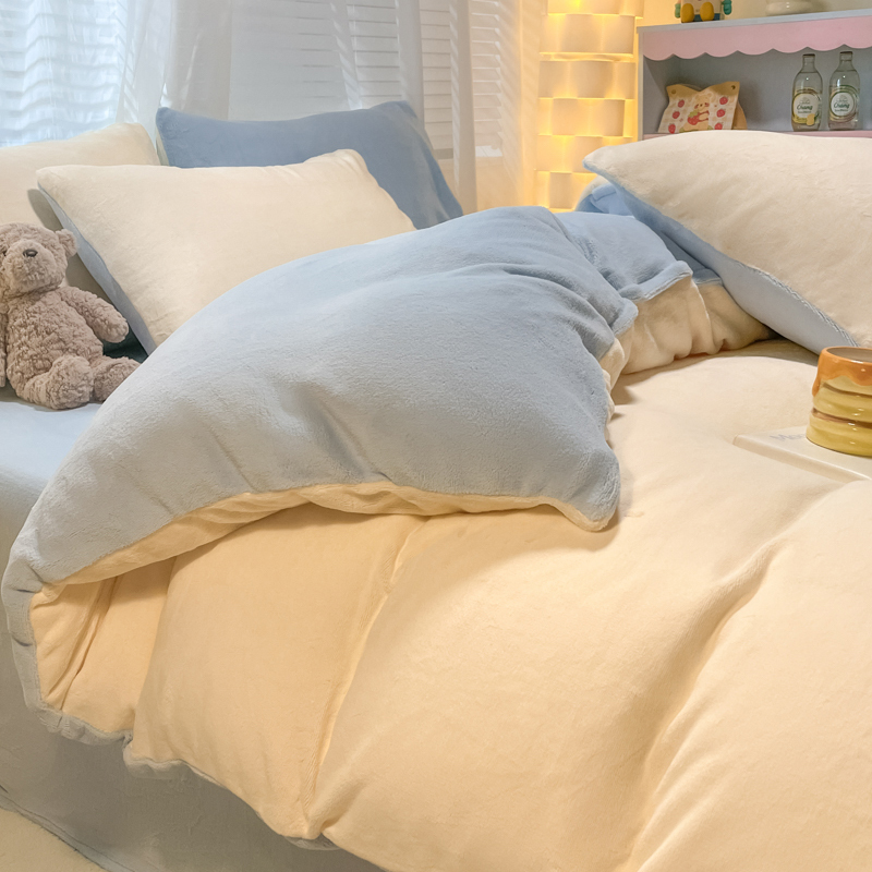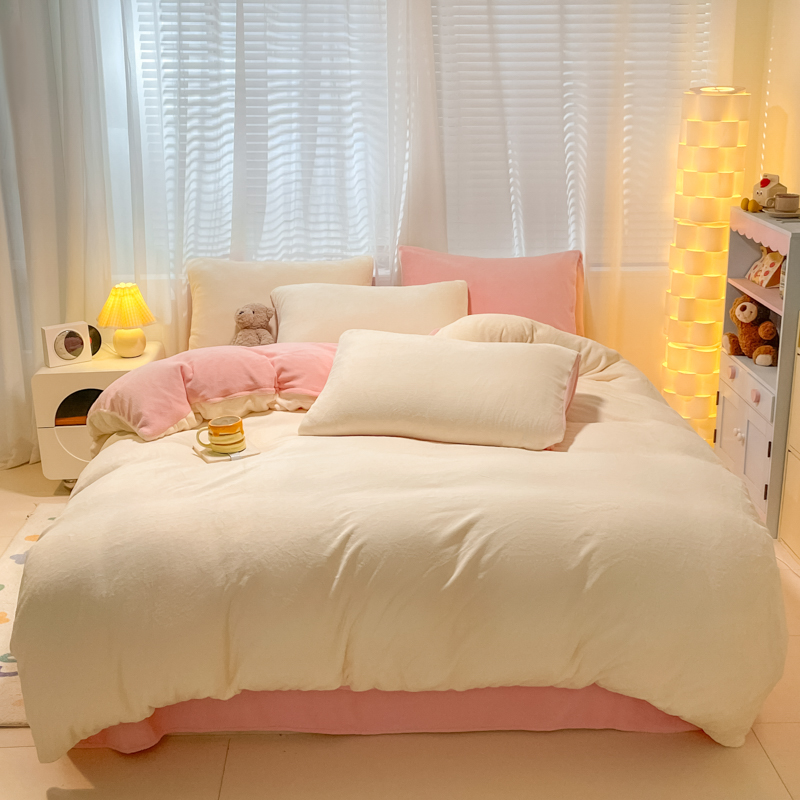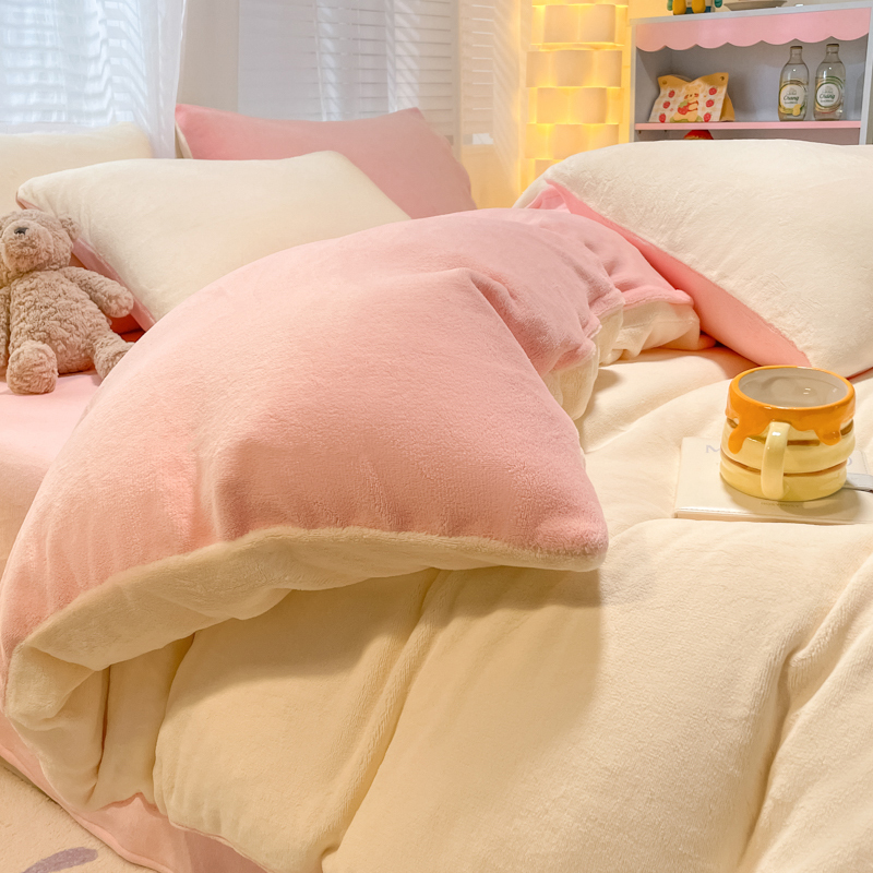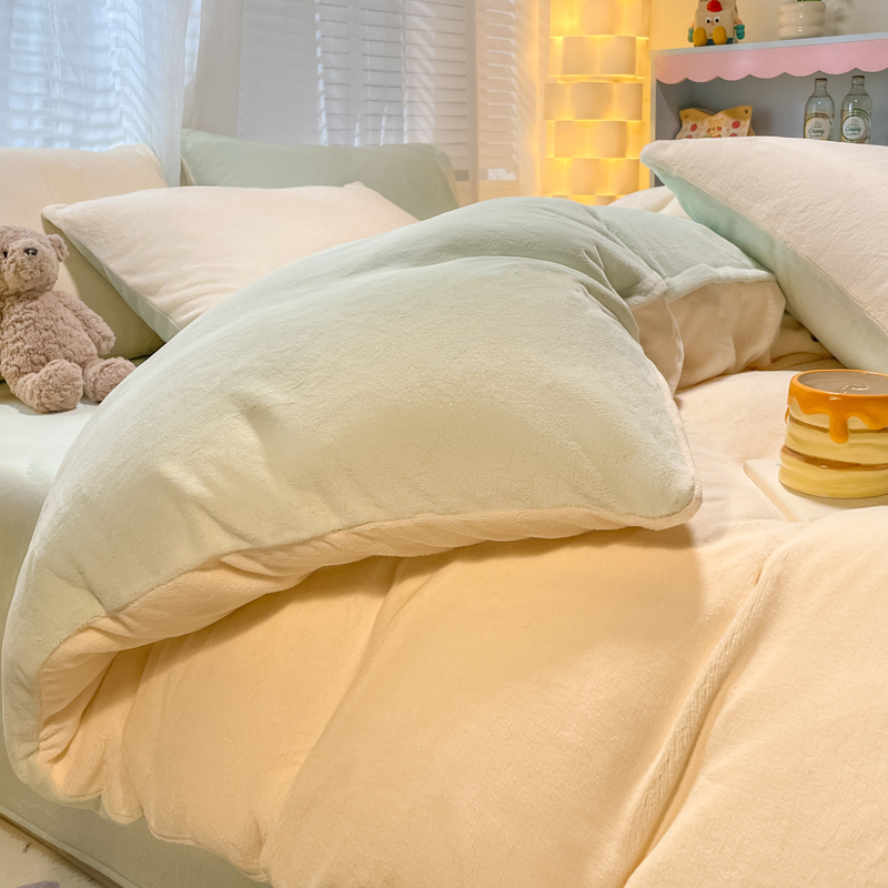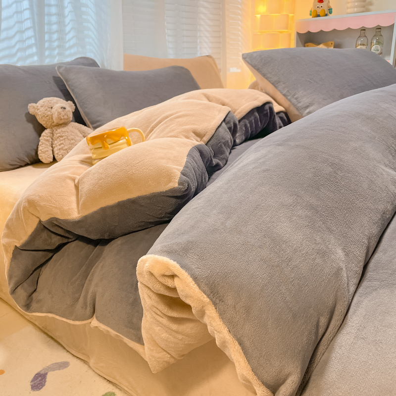 (总)仔仔熊 2025新款牛奶绒纯色双拼四件套