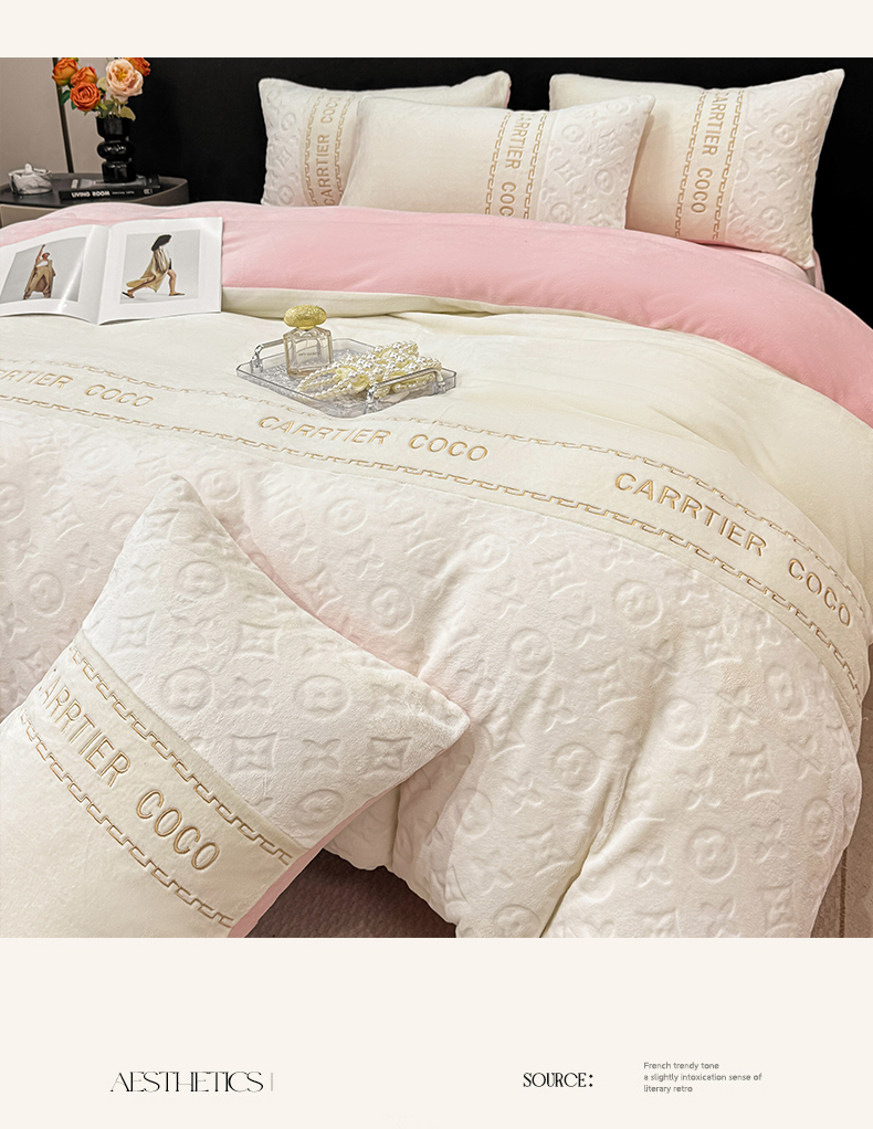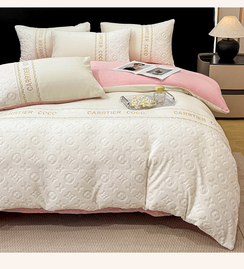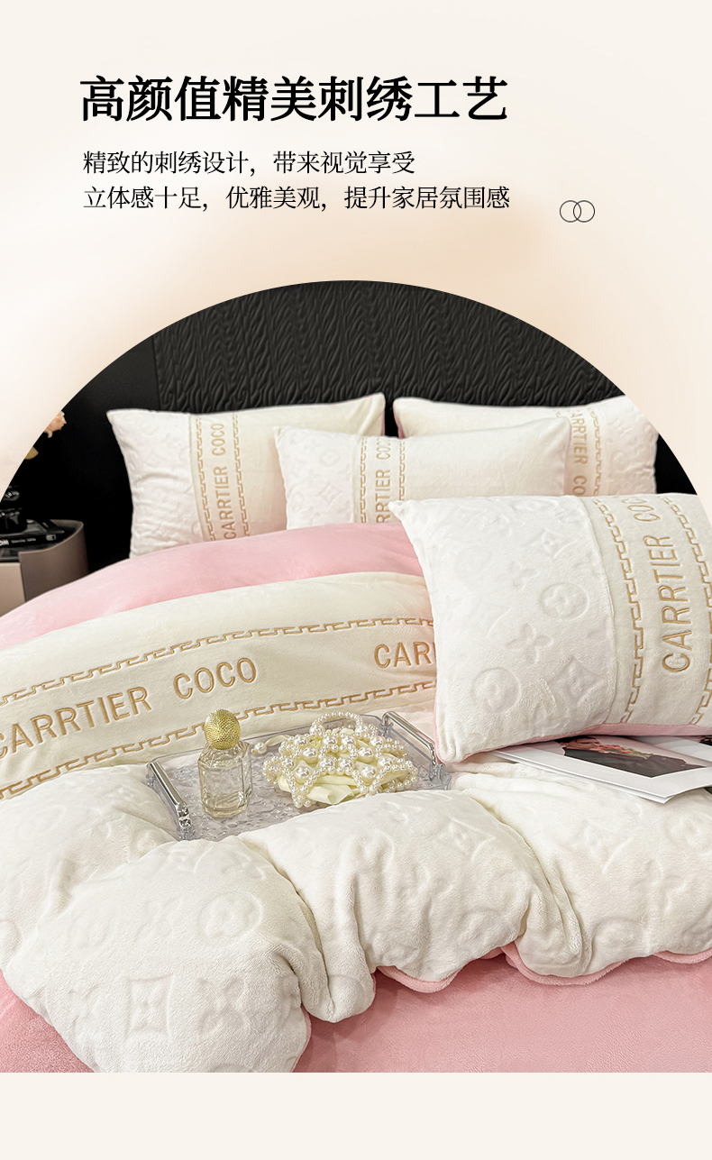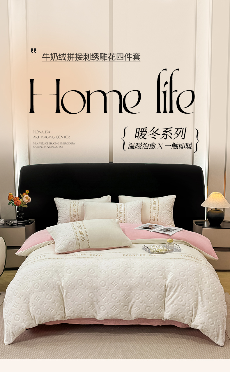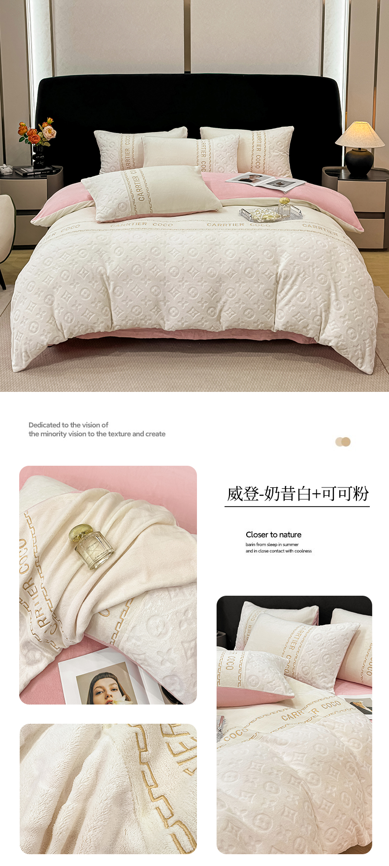 当前位置: 91家纺网 > 商品网购 > 床品套件 > 四件套 > 牛奶绒四件套 > 灰鲸 2025新款牛奶绒拼接刺绣雕花四件套-威登 威登-奶昔白+可可粉