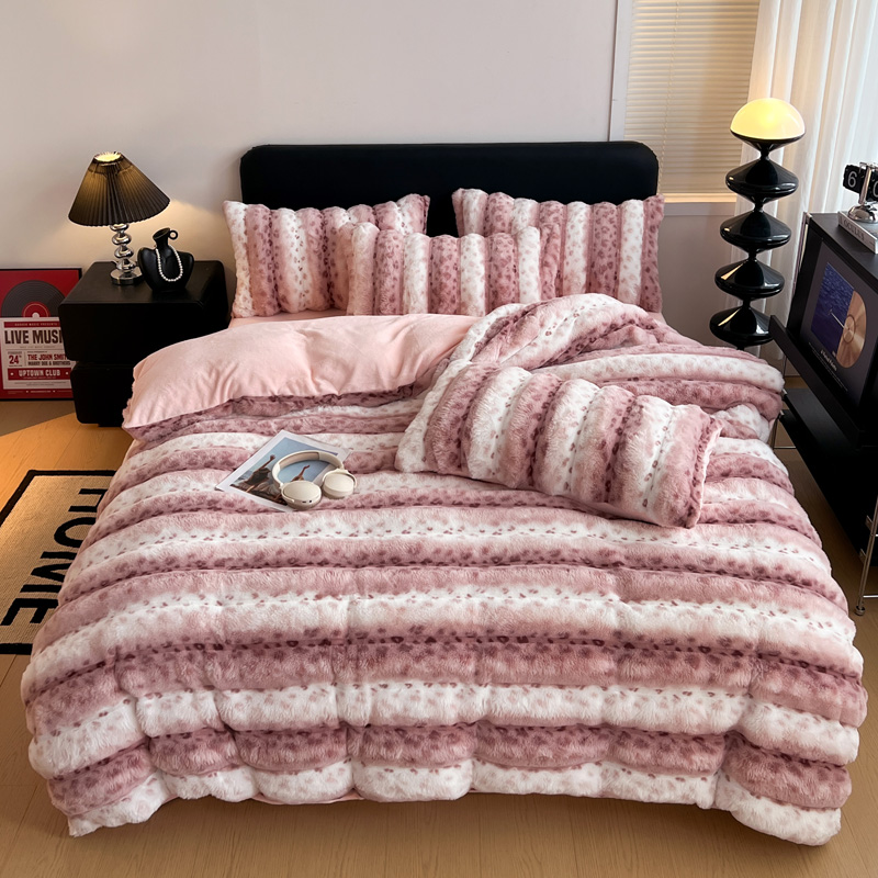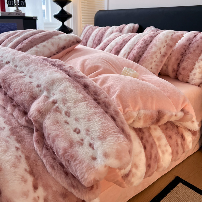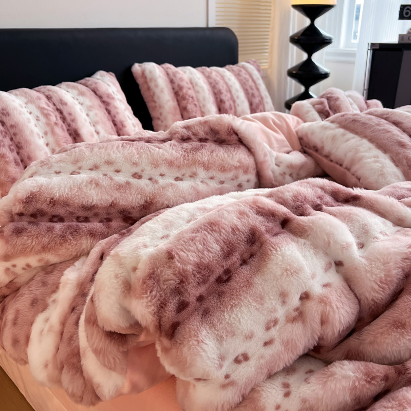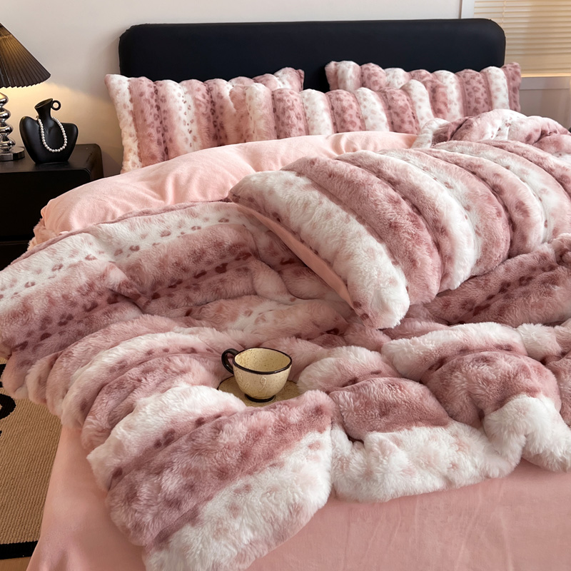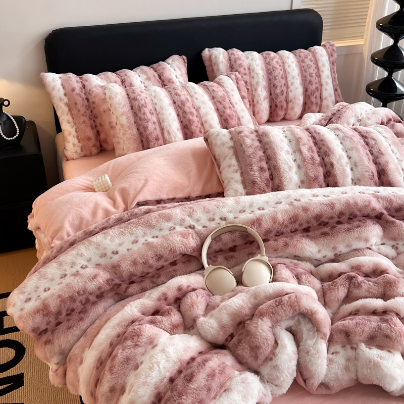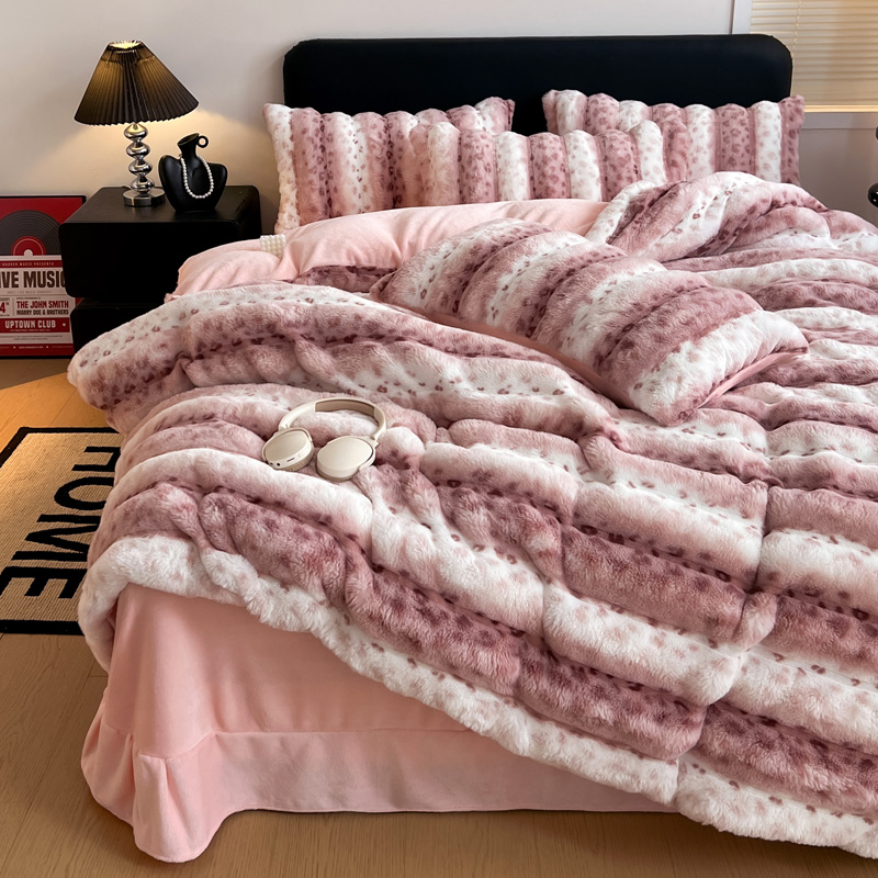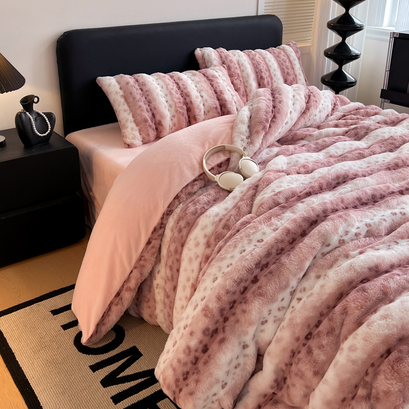 梦莱斯 2025新款轻奢高克重兔毛绒四件套 粉色