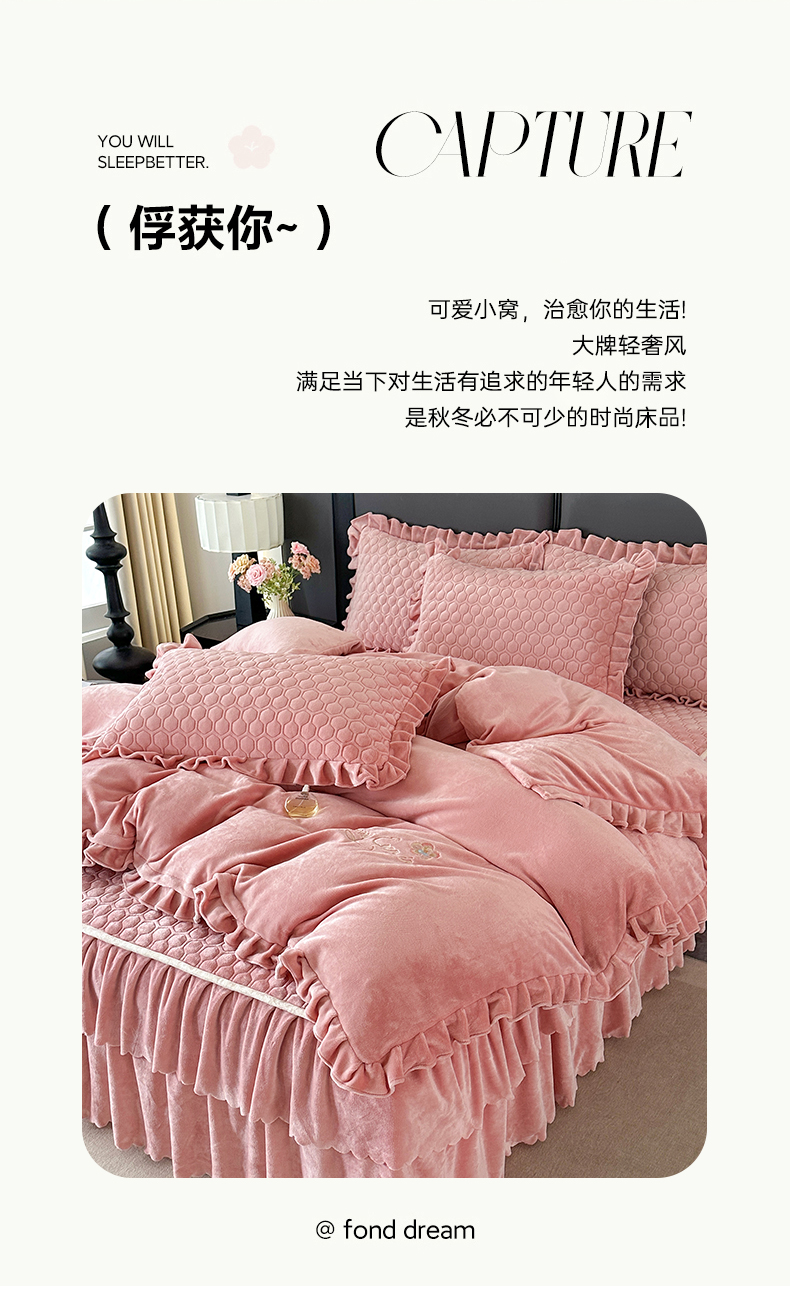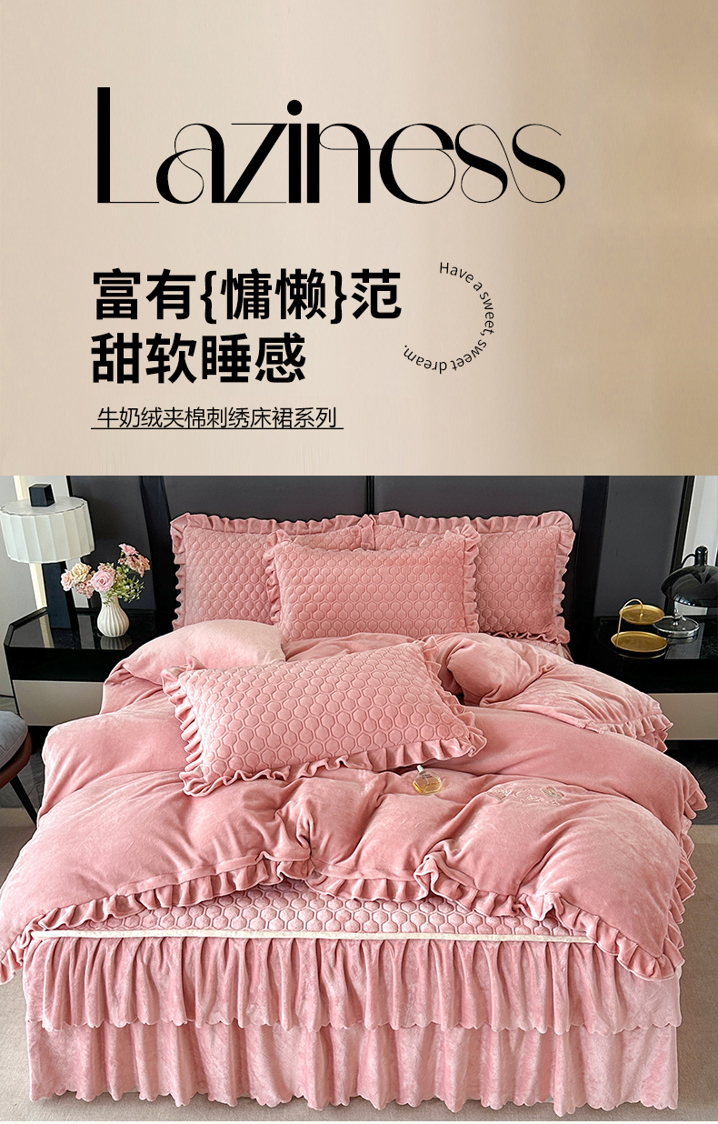 商品名称:(总)董韵家纺 2025新款牛奶绒刺绣夹棉床裙四件套系列(控价)