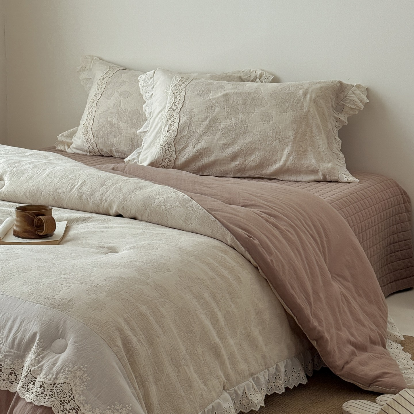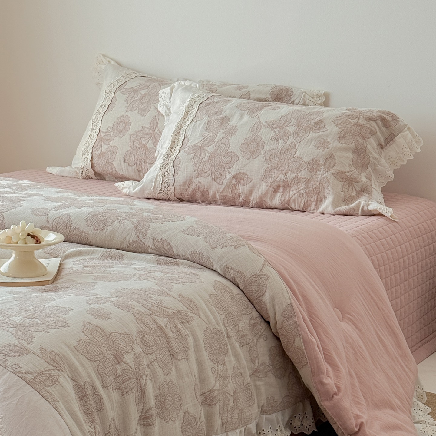 (总)汇庭 2025秋冬新款麻三月床盖三件套系列,黑点点,花絮粉,锦绣,梨花雨,青舍,三月,苏梨士,夜曲,组合