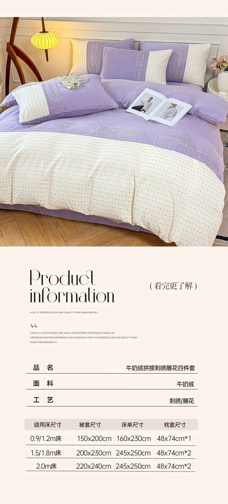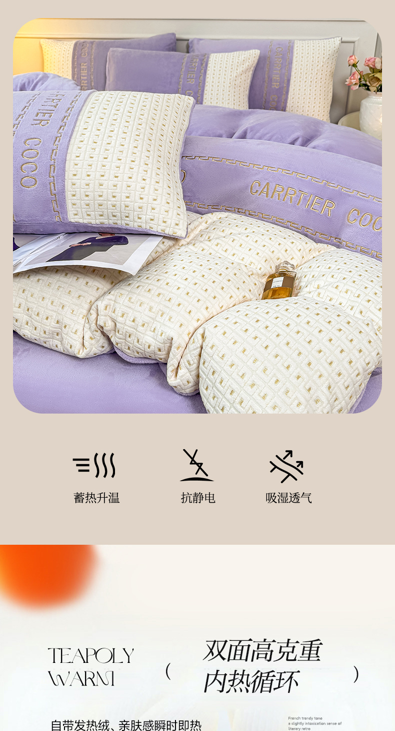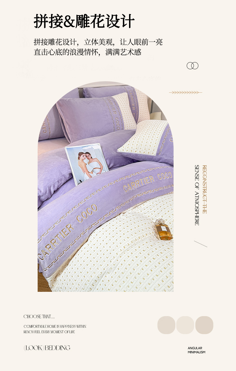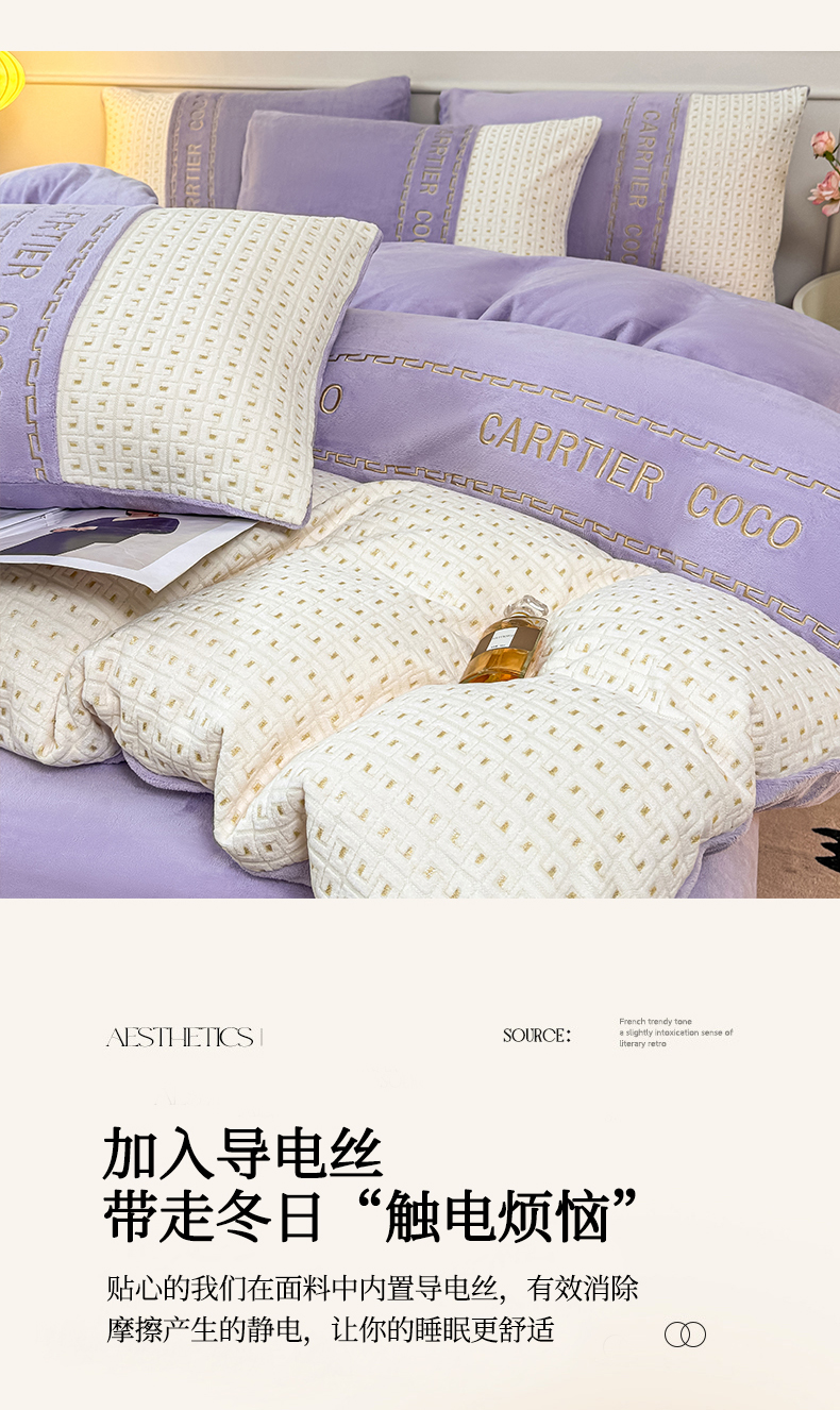 当前位置: 91家纺网 > 商品网购 > 床品套件 > 四件套 > 牛奶绒四件套 > 灰鲸 2025新款牛奶绒刺绣拼接款四件套-威廉 威廉-风铃紫