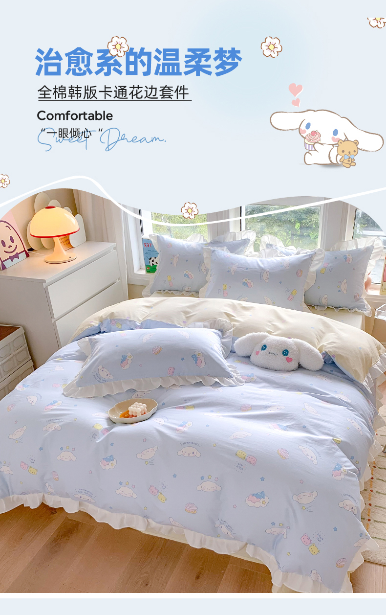 当前位置: 91家纺网 > 商品网购 > 床品套件 > 四件套 > 全棉普通四件套 > 玉元坊 2025新款全棉纯棉玉桂狗白花边款式四件套 云朵大耳狗【花边款】