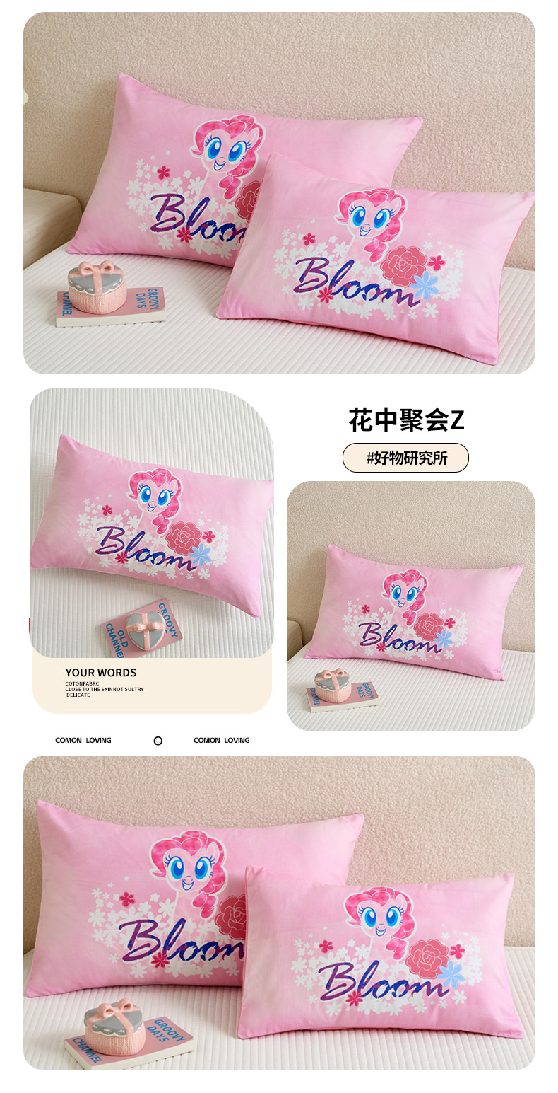 (总)百利卡通(原迪士尼家纺) 2025新款全棉双层纱小马宝莉系列三四件套,花中碧琪,花中柔柔,花中珍奇,云和紫悦