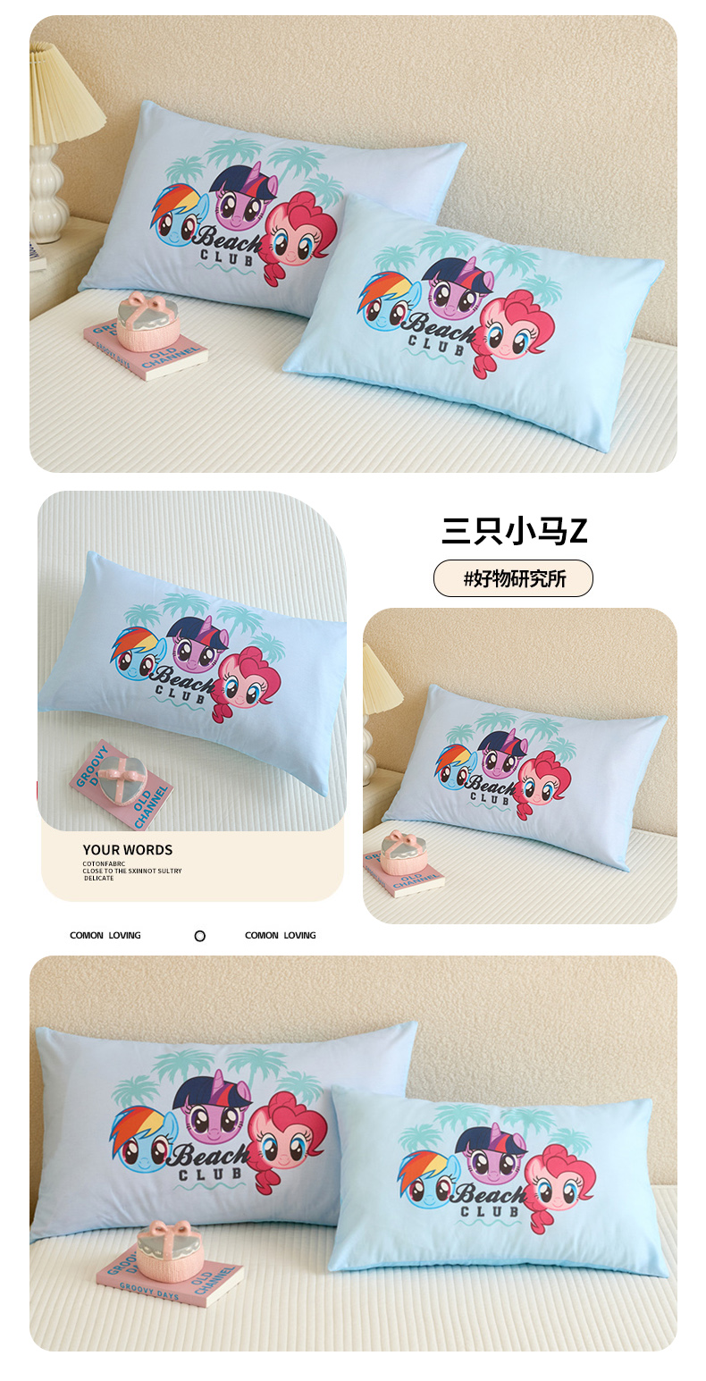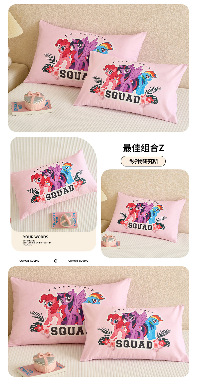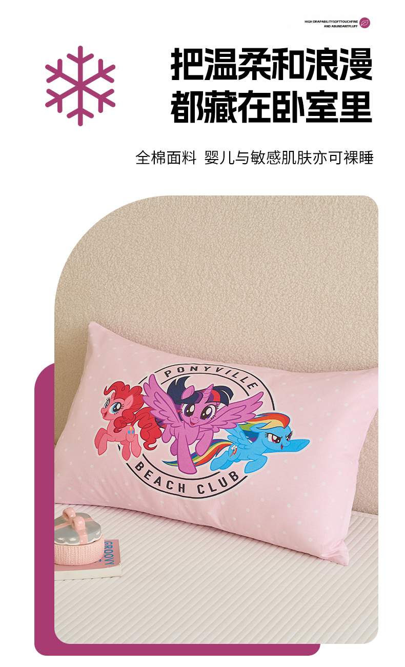 (总)百利卡通(原迪士尼家纺) 2025新款全棉圆网数码印花床笠枕套-小马宝莉,草莓紫悦L,春天紫悦L,飞翔柔柔L,格子小马L,开心碧琪L