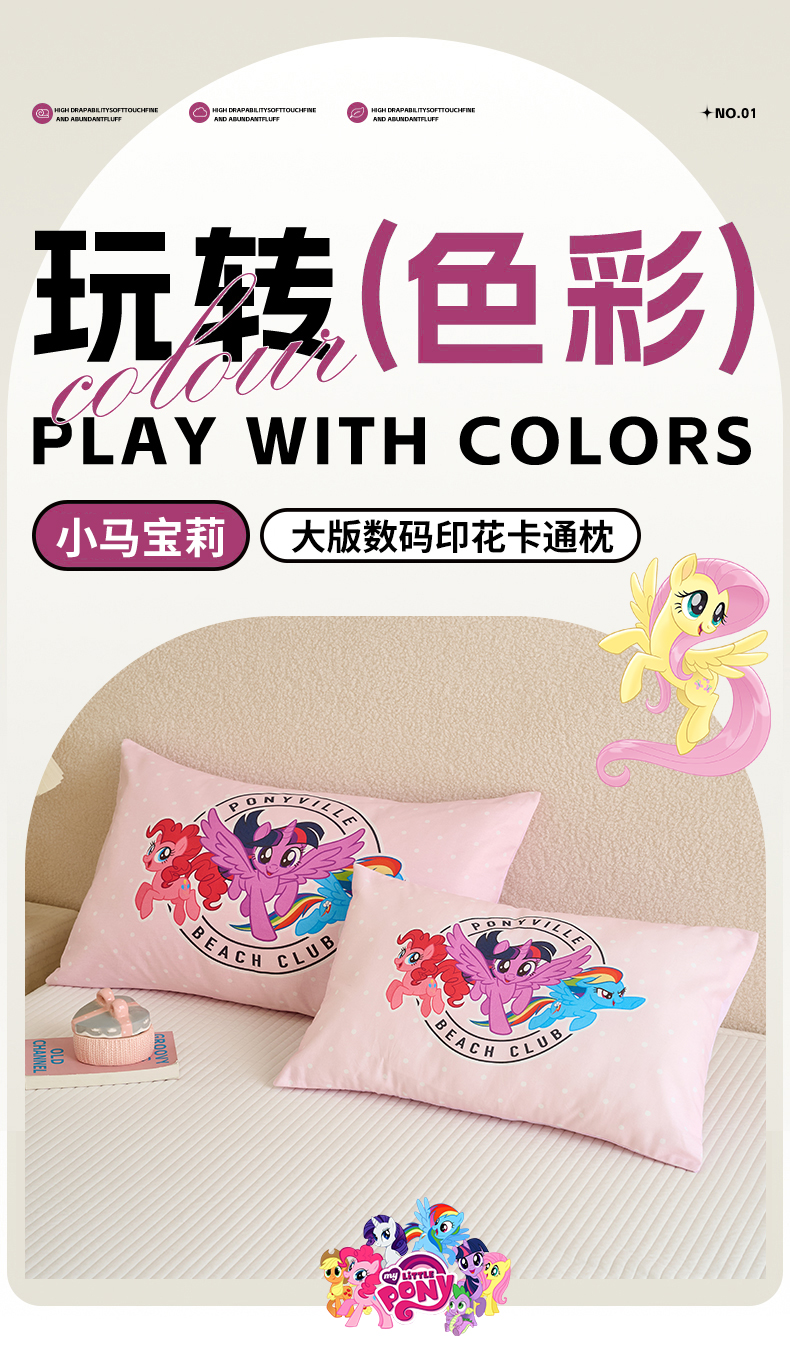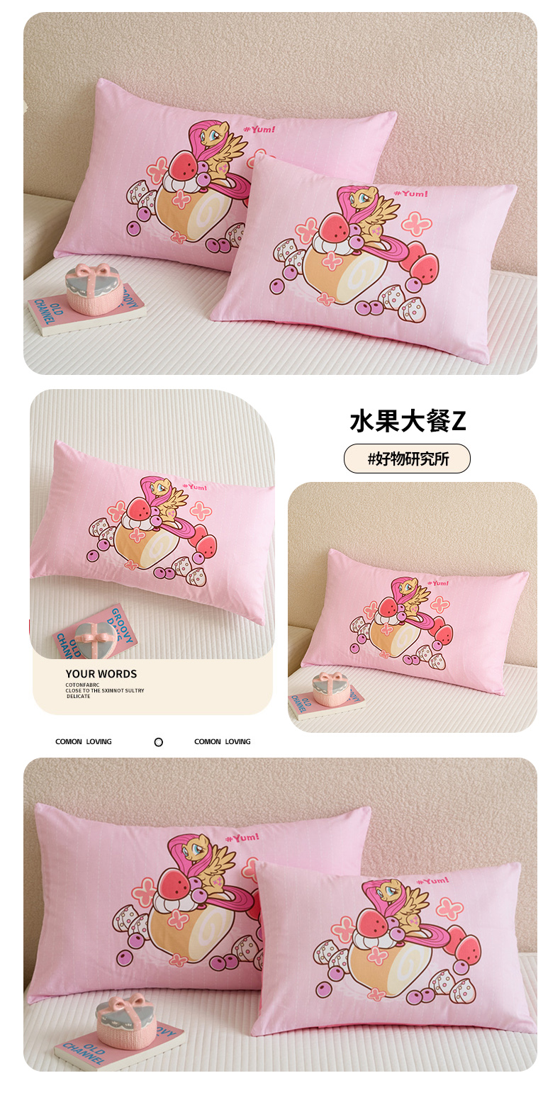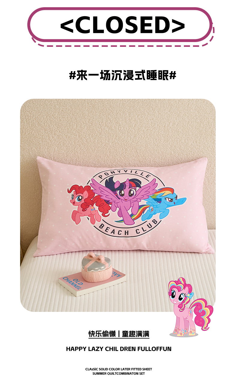 (总)百利卡通(原迪士尼家纺) 2025新款全棉圆网数码印花床笠枕套-小马宝莉,草莓紫悦L,春天紫悦L,飞翔柔柔L,格子小马L,开心碧琪L