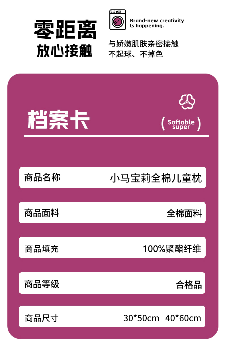 商品名称:(总)百利卡通(原迪士尼家纺) 2025新款小马宝莉全棉儿童枕枕头枕芯