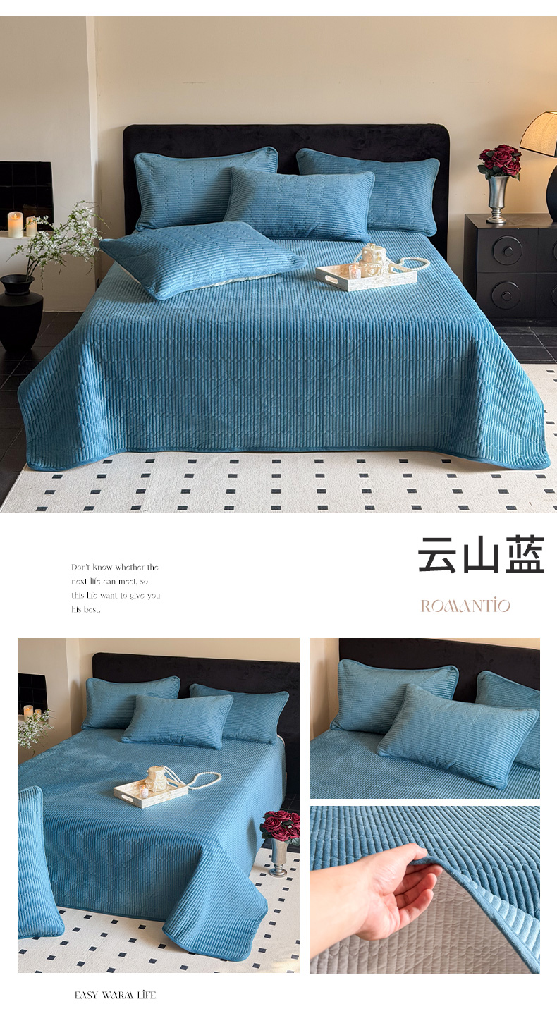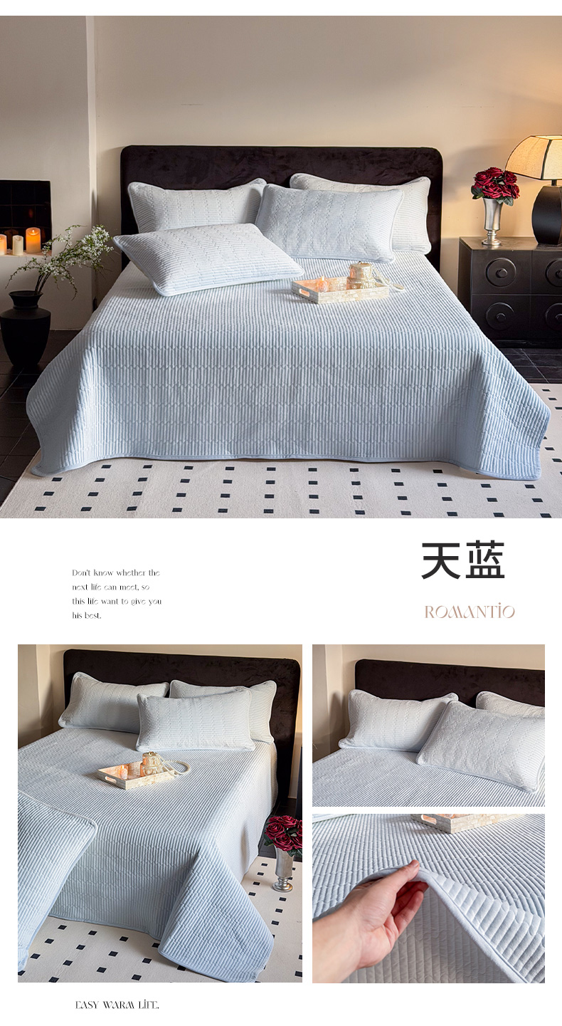 (总)鑫喜莱家纺 2025新款宝宝绒纯色床盖单件床褥垫软床垫床盖三件套,豆沙,高级灰,卡其,孔雀绿,抹茶绿,浅灰,深灰,桃粉,天蓝,云山蓝