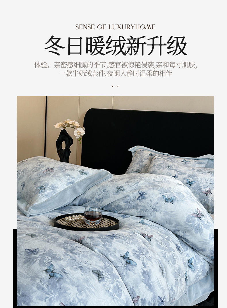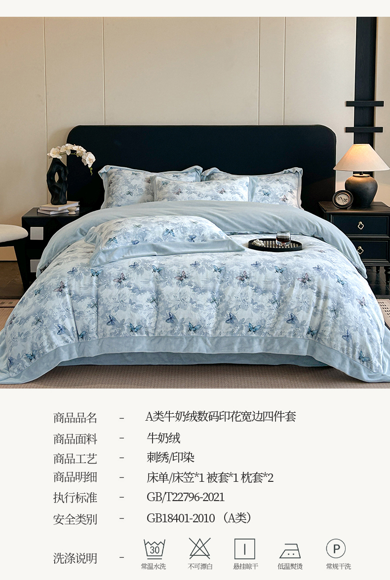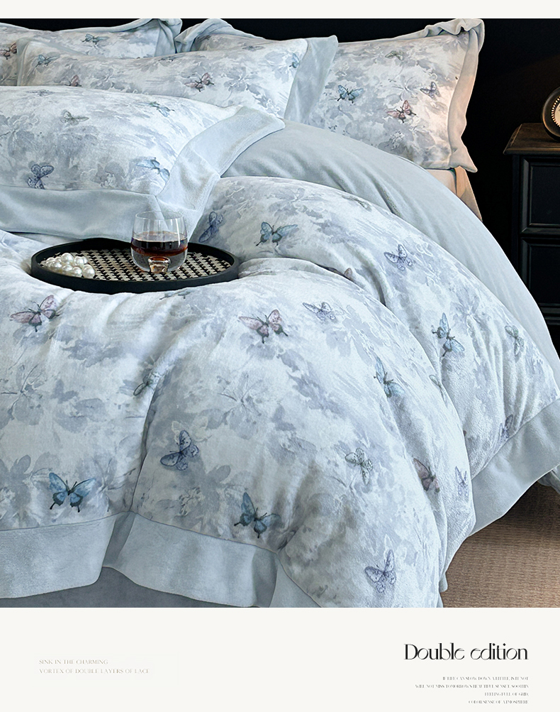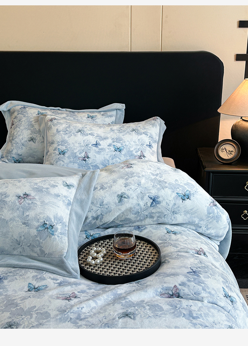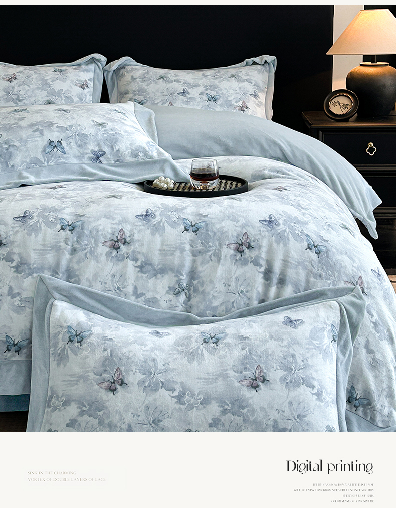 当前位置: 91家纺网 > 商品网购 > 床品套件 > 四件套 > 牛奶绒四件套 > 眷恋家纺 2025新款加厚牛奶绒法式数码印花宽边四件套 韵蝶
