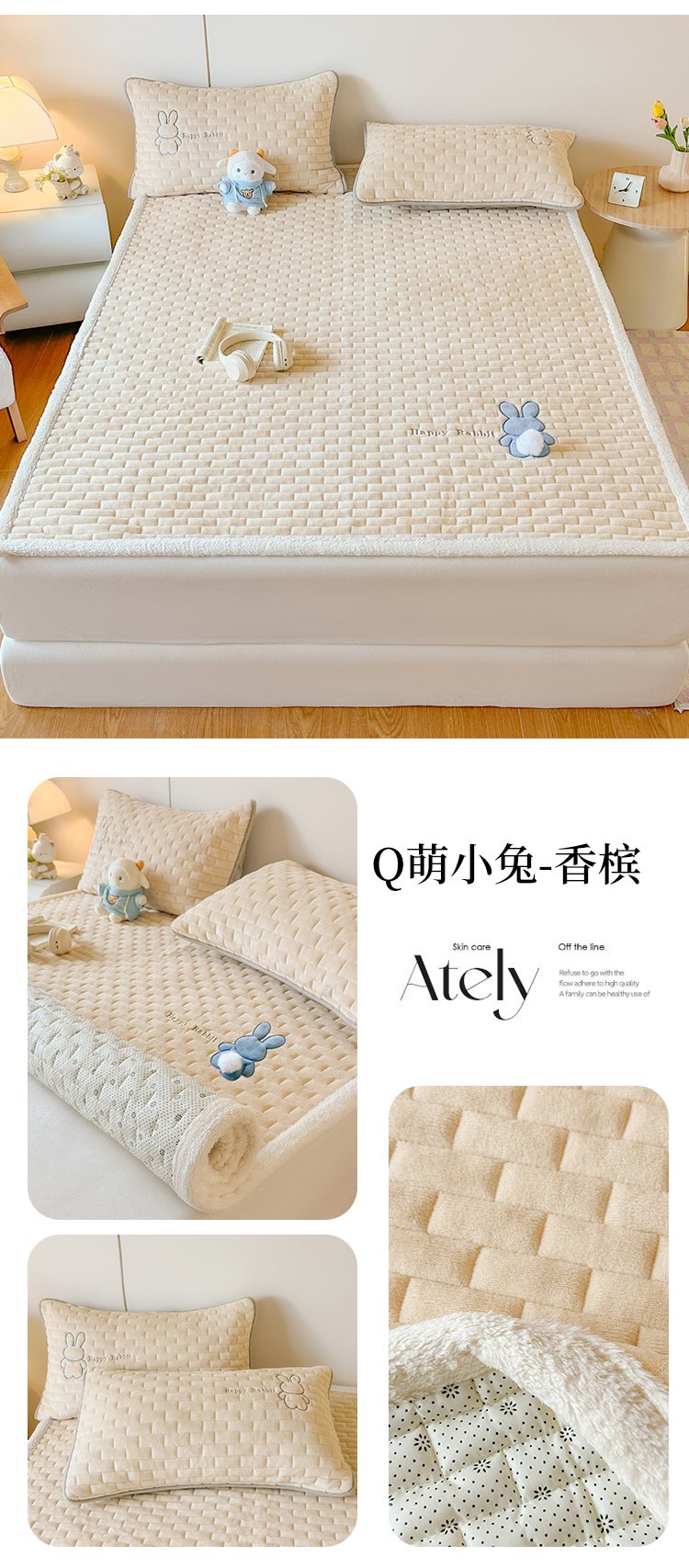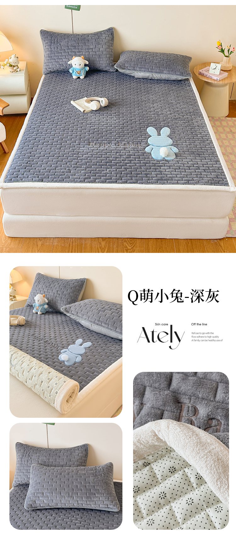 当前位置: 91家纺网 > 商品网购 > 床垫/床褥 > 普通床垫 > 恋绒家纺 2025新款贴布绣牛奶绒床褥床垫 Q萌小兔-深灰