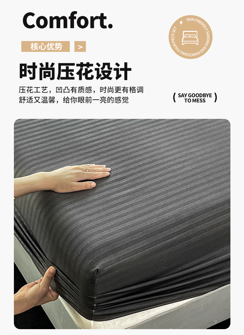当前位置: 91家纺网 > 商品网购 > 床上用品 > 床笠 > 恬澳家纺 2025新款简约磨毛压花床笠外贸跨境电商亚马逊速卖通单床笠三件套欧美尺寸多多跨境平台TEMU SHEIN 条纹-深灰