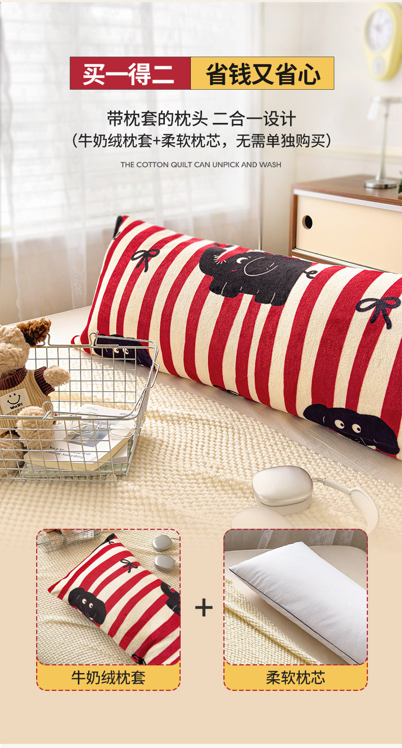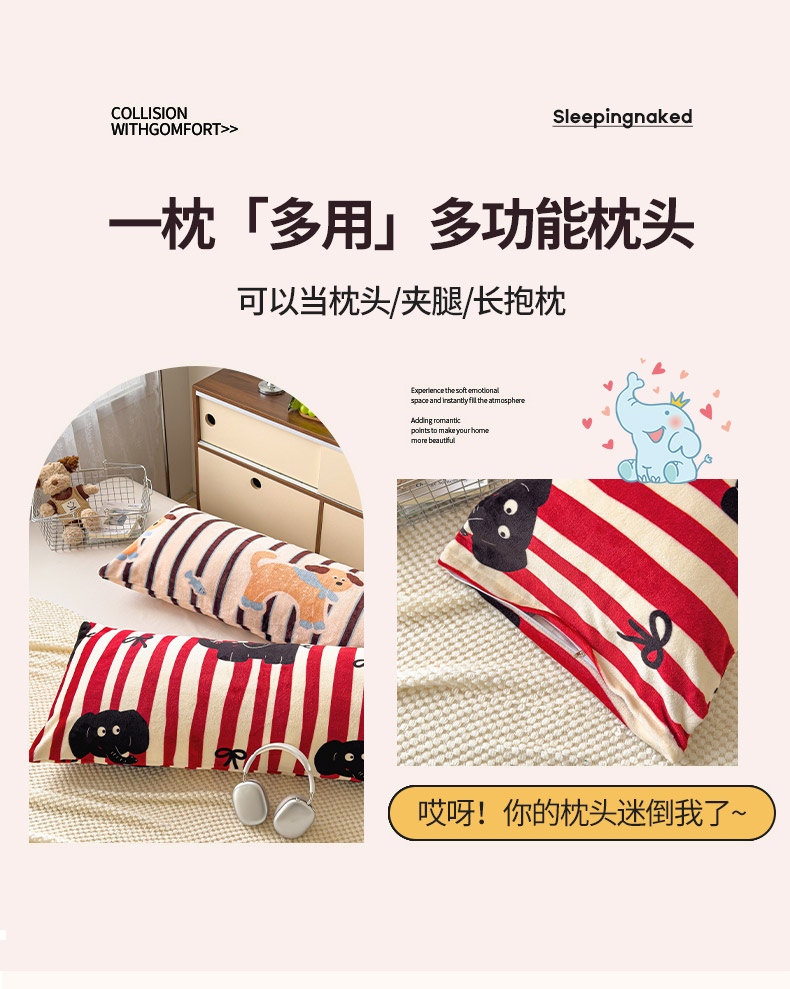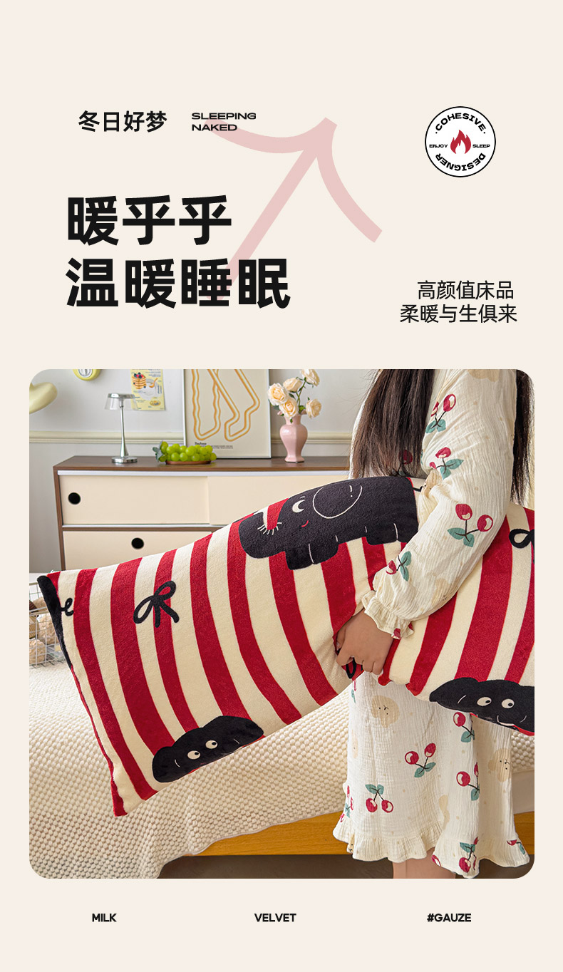 当前位置: 91家纺网 > 商品网购 > 枕头/枕芯/保健枕/颈椎枕 > 枕头枕芯 > 圣比熊 2025新款高克重牛奶绒枕加芯牛奶绒长条枕套夹腿抱枕 大象乐园