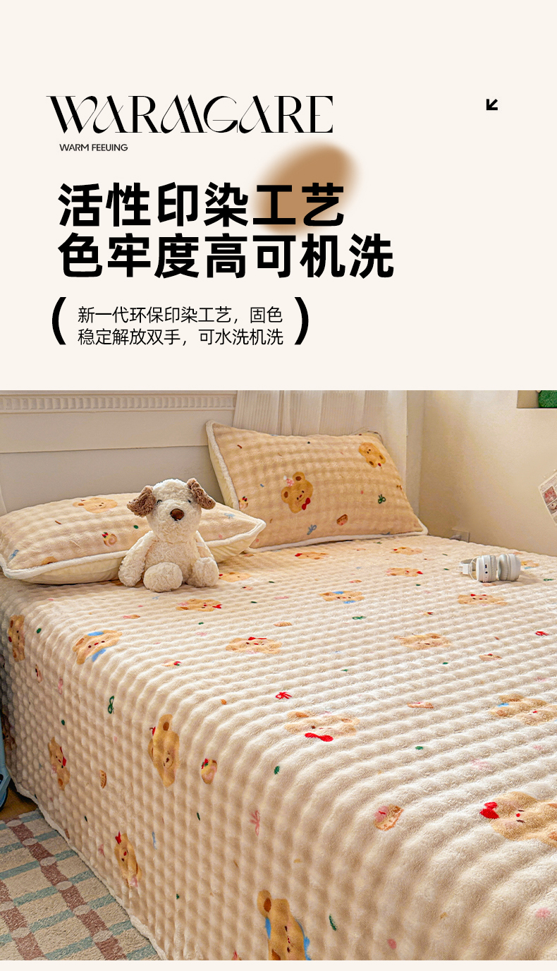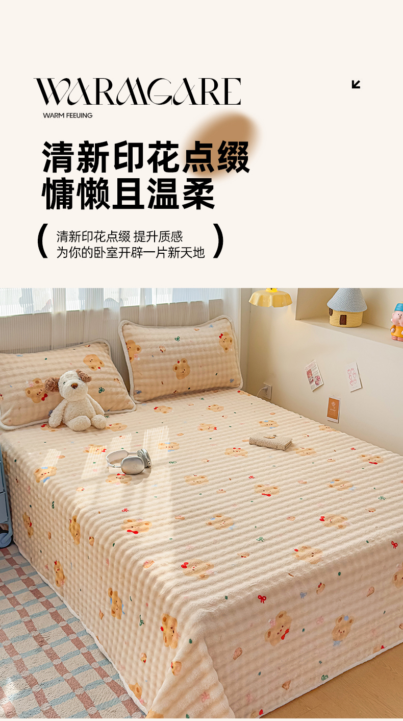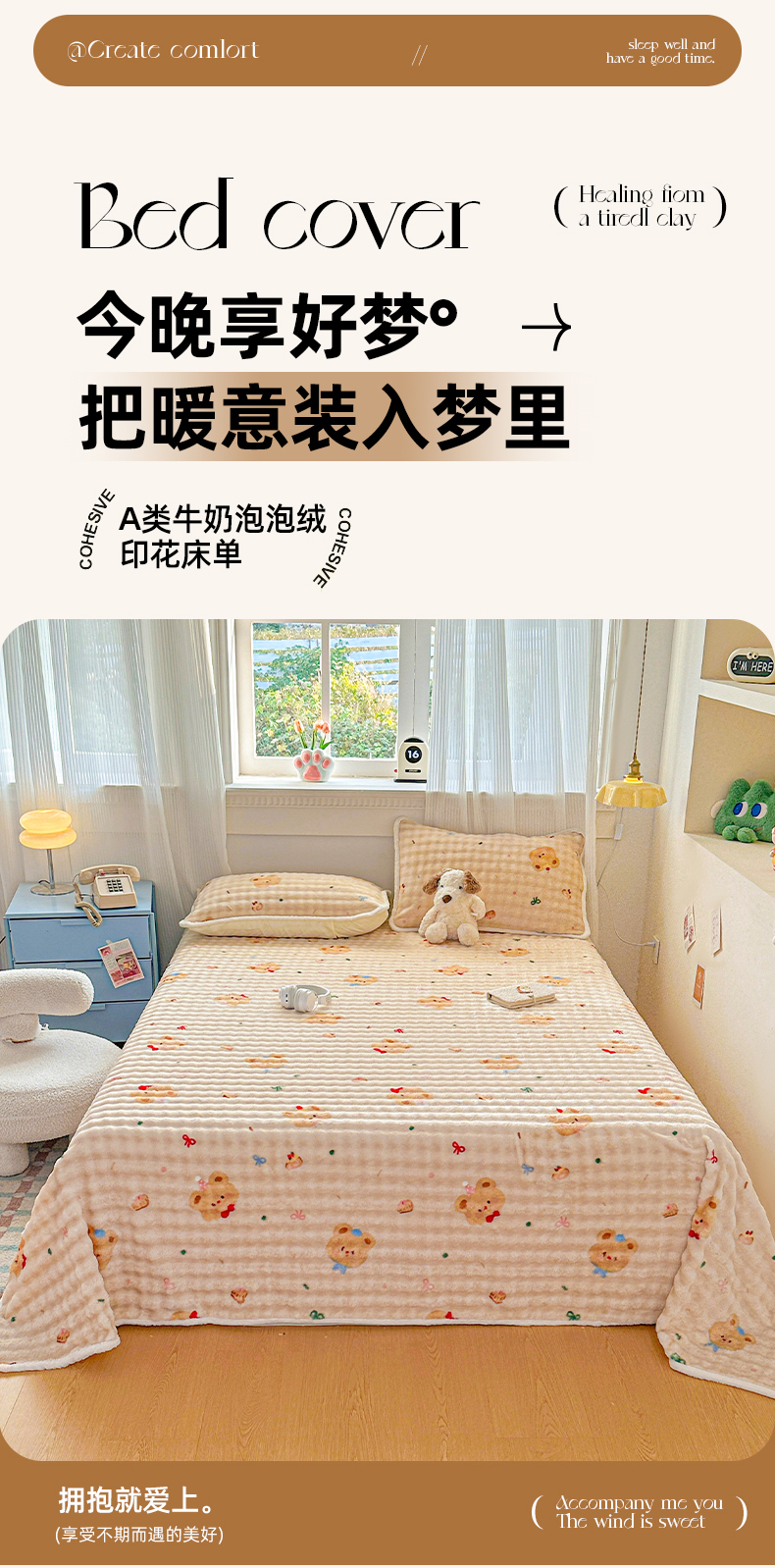 • 91家纺网 家纺一手货源 找家纺 丝芙妮家居(原乐视家纺) 2025新款A类牛奶泡泡绒印花单品床单 纯真小熊